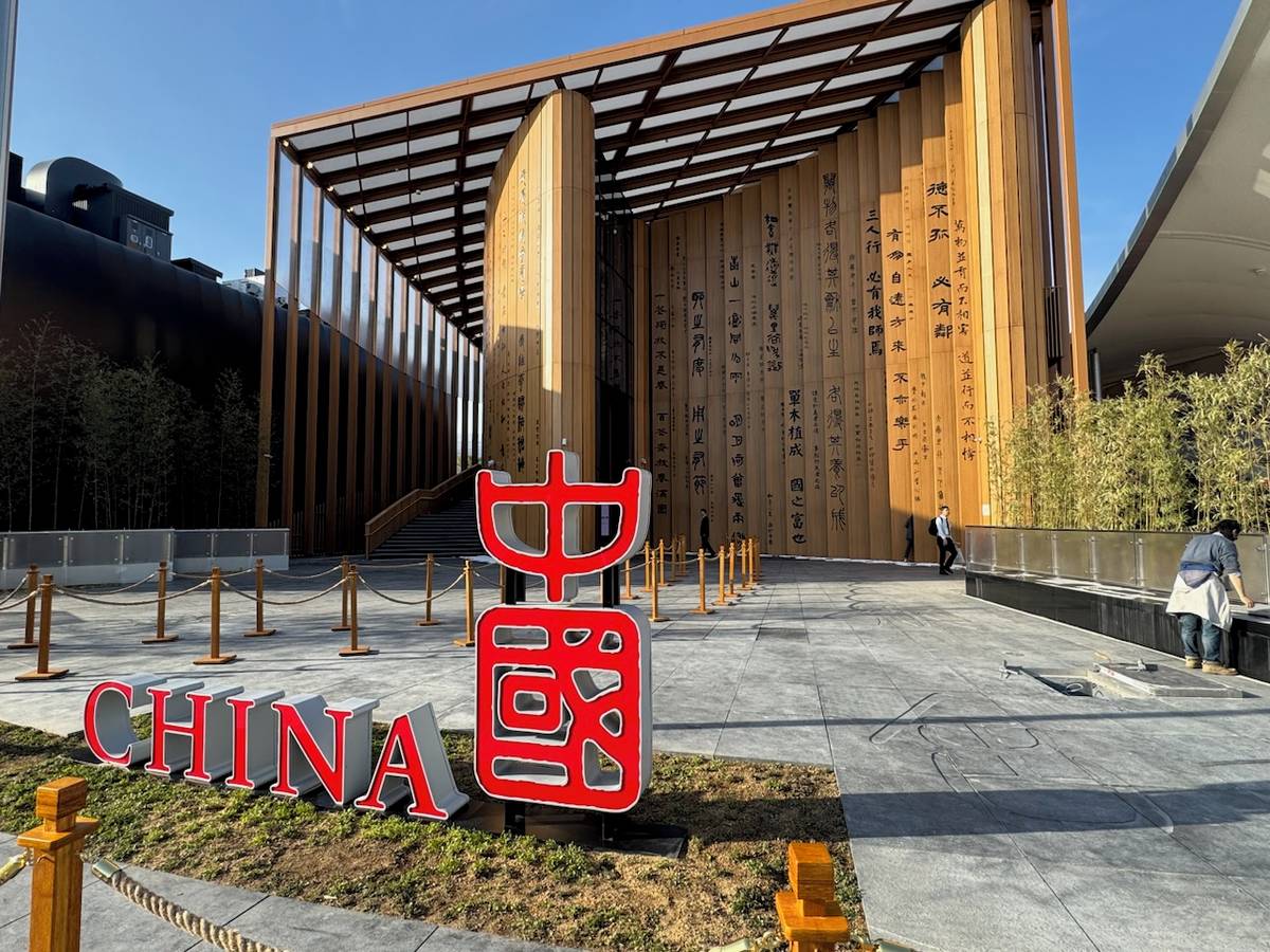 Vnější design čínského pavilonu se inspiroval bambusovými plátky a má tvar rozvinutého svitku tradiční čínské kaligrafie.