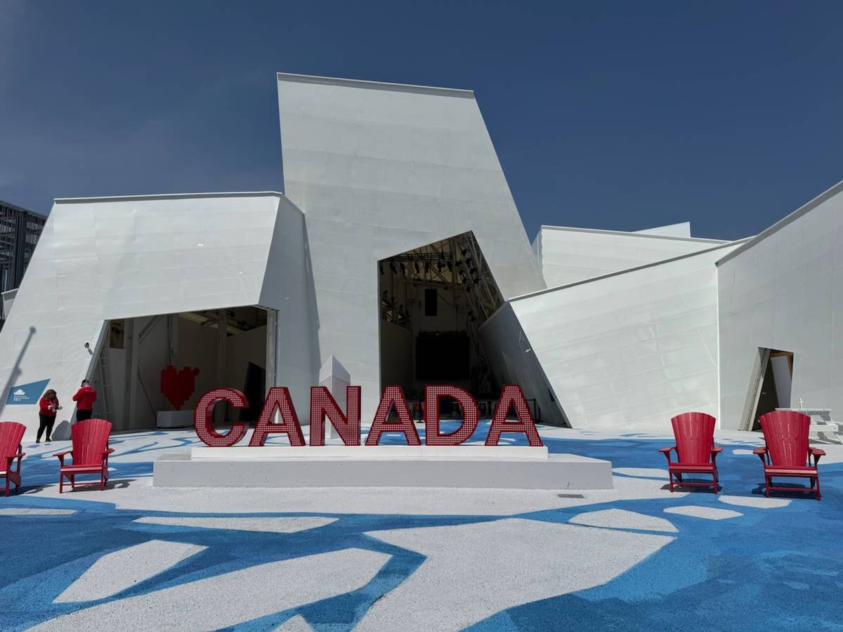 Kanadský pavilon je inspirován rozmrzáním zamrzlých vodních toků na začátku jara.
