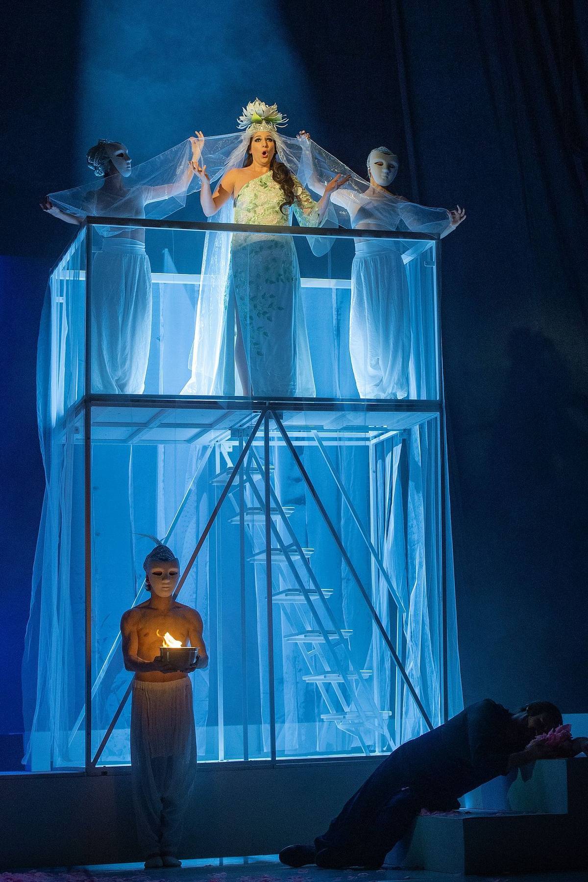 Lívia Obručník Vénosová jako Leila (nahoře) na zkoušce Lovců perel.