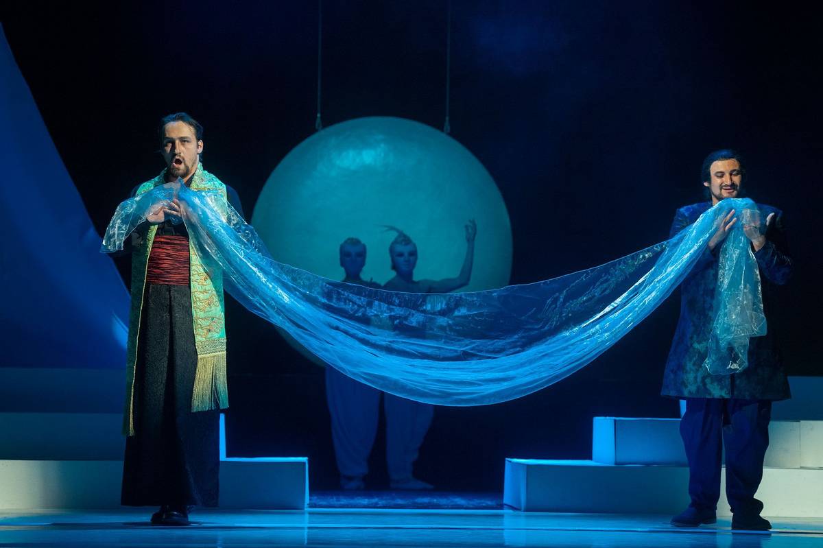Sergej Kostov jako Nadir (vpředu vlevo) na zkoušce Lovců perel.