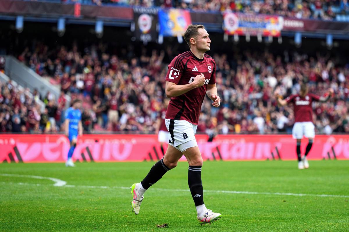 Jan Kuchta ze Sparty Praha oslavuje gól na 2:0.