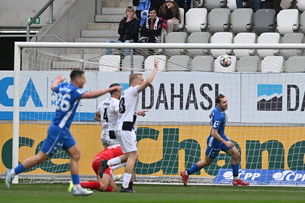 Utkání 29. kola první fotbalové ligy: FC Hradec Králové – Slovan Liberec, hosté právě vstřelili gól.