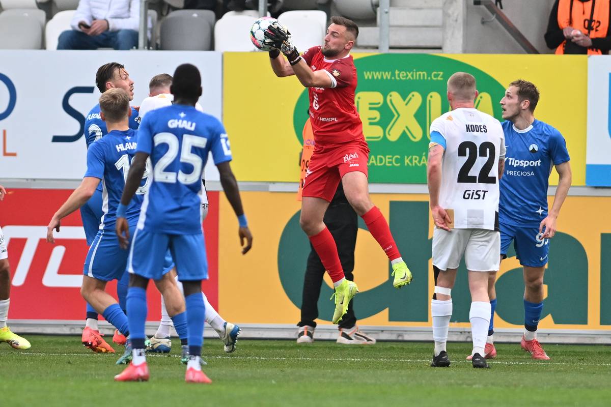 Utkání 29. kola první fotbalové ligy: FC Hradec Králové – Slovan Liberec, v akci domácí gólman Adam Zadražil