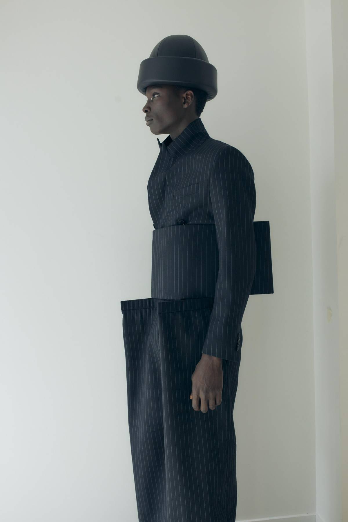 Duran Lantink se nedrží zažitých módních forem - tohle je jeho variace na mini sukni