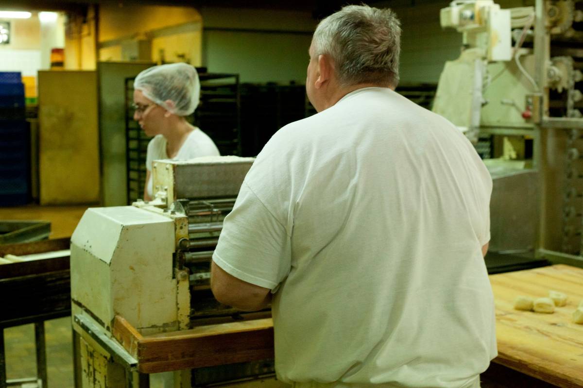 Podle majitele pekárny je největší problém dnes sehnat pekaře a poctivé zaměstnance. "Je to práce v noci a to je pro lidi velký problém. Možná je to i tím, že jsme blízko Prahy. Většina zaměstnanců, které tady máme, u nás pracuje od 90. let a někteří jsou už v důchodovém věku," říká pekař, který v mechanickém stroji rozděluje těsto na stejně velké díly.