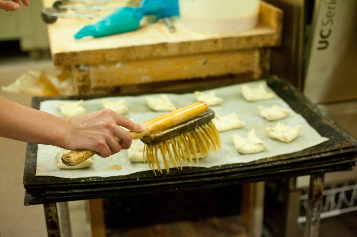 "Na dovolenou moc nejezdíme, vlastně jsem toho v životě moc nenacestovala, ale je to něco za něco. Ta práce mě baví a vyžaduje zodpovědnost. Když nejsem tady ve výrobě, sedím v kanceláři a odpovídám na e-maily," popisuje Aneta, zatímco plní těsto tvarohem.