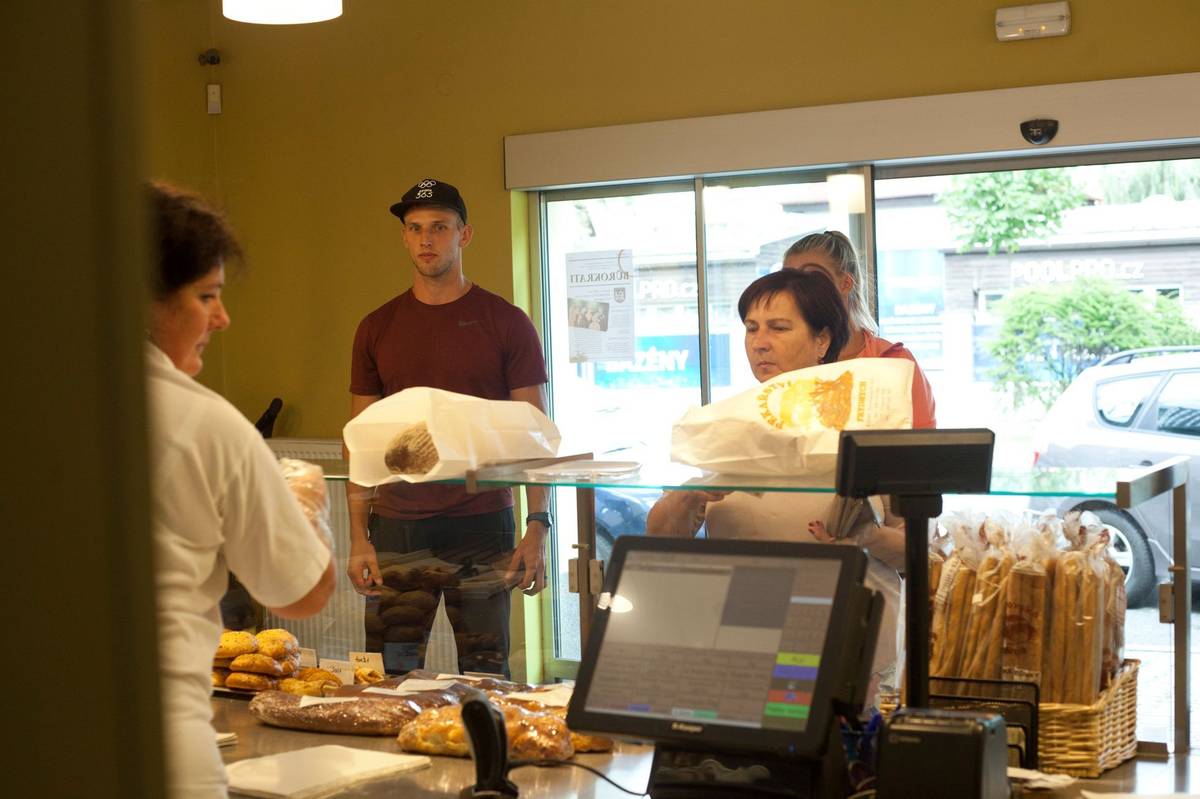 Ani v odpoledních hodinách není v obchodě úplný klid. Co se sní už ráno, rodina odpoledne připéká. V obchůdku to tak stále voní čerstvě upečenými rohlíky, sladkými košíčky i taštičkami.