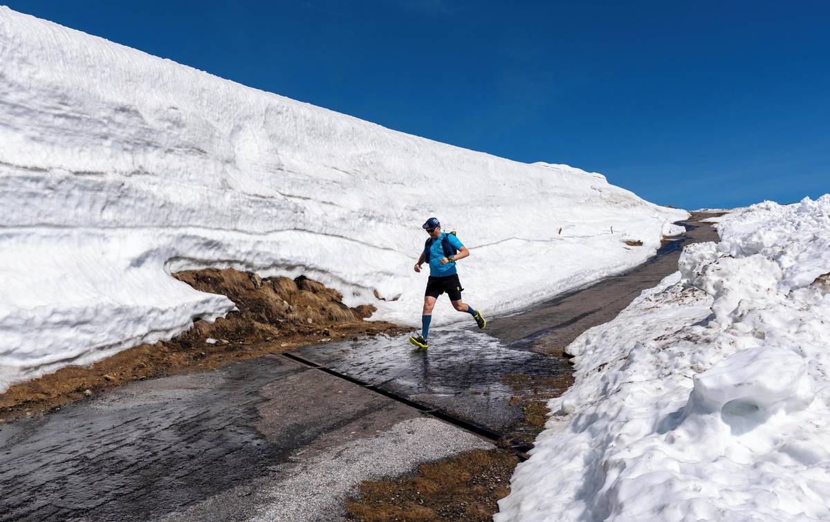 V některých místech je podél cesty až šestimetrová sněhová stěna.