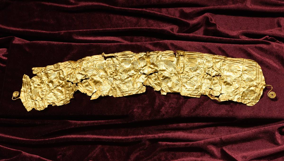 Za nález zlaté čelenky či ozdoby pravěkého opasku s tepanými kruhovými motivy a spirálkami na obou koncích Moravskoslezský kraj vyplatil odměnu 565 000 Kč