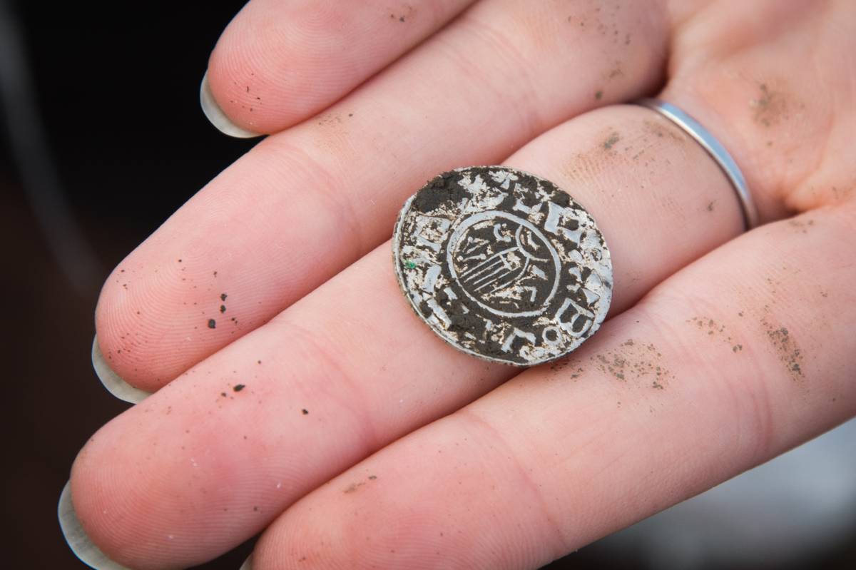 Takto archeologové denáry u Chýště většinou nacházeli, obalené hroudou hlíny.