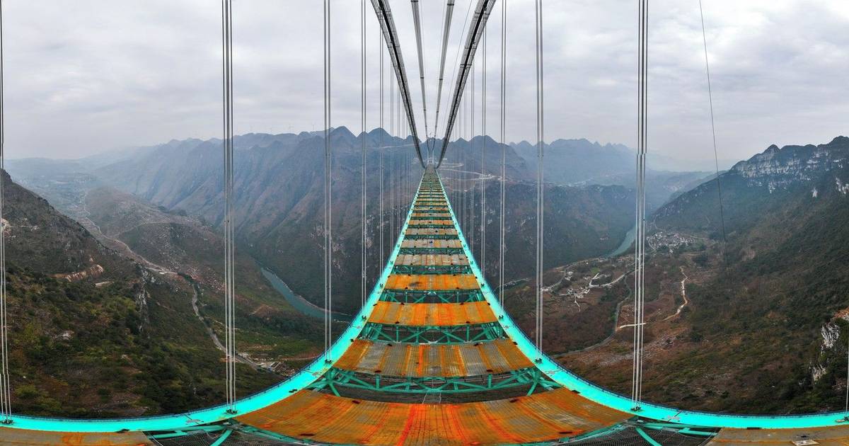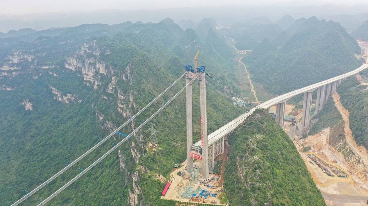 Huajiang Grand Canyon Bridge se tyčí ve výšce 625 metrů nad řekou, stane se nejvyšším mostem na světě.