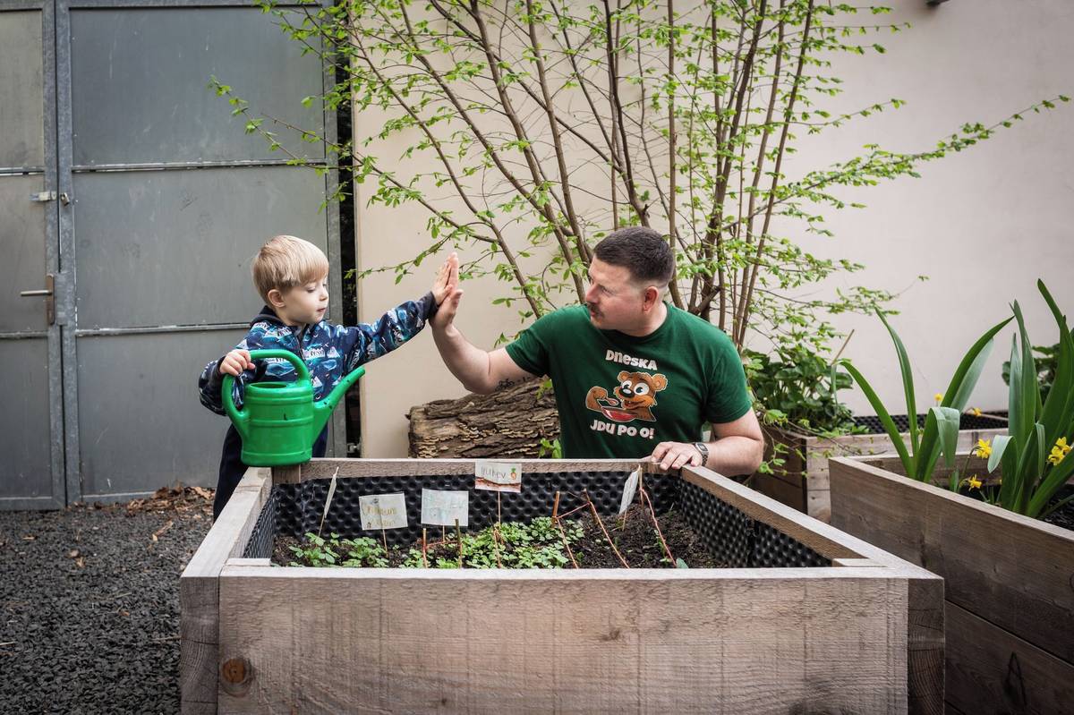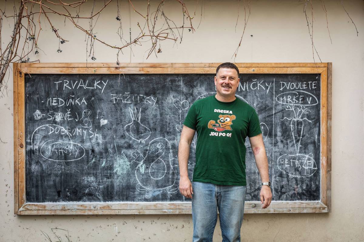 Karel Kristek v této školce působí už od roku 2020. Do školství se dostal během pandemie, kdy ztratil práci v cestovním ruchu. Jeho syn navštěvoval právě tuto školku a skrze komunitu rodičů se dostal k tehdejší ředitelce. Slovo dalo slovo a Karel se postupně stal plnohodnotným členem pedagogického týmu. Začátky nebyly snadné, ale dnes už je jeho role pevně ukotvená – pro děti je přirozenou autoritou, kolegyním partnerem a školce přináší jiný pohled a energii.