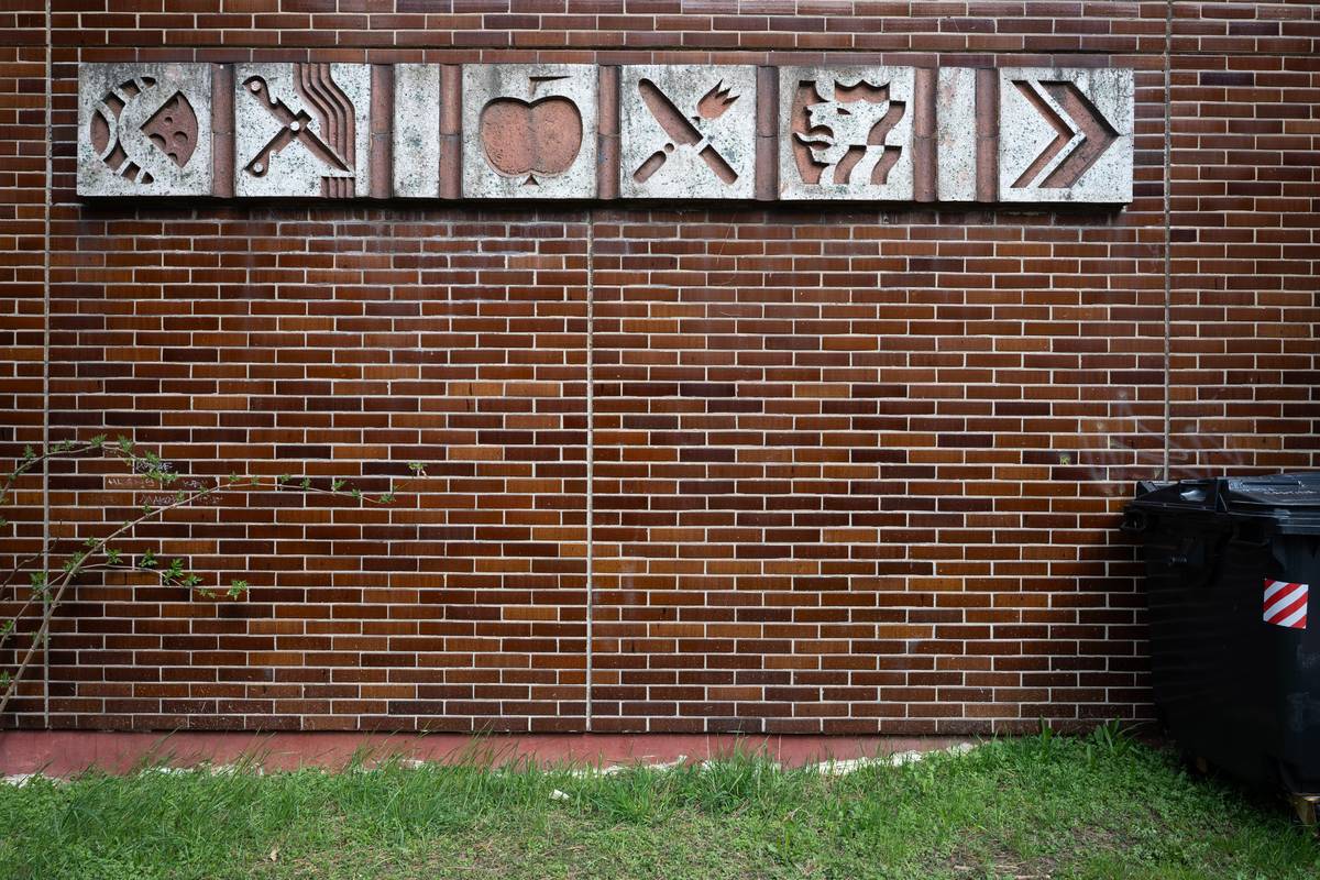 Snad proto zůstaly na zdi obchodního centra sice neaktuální, ale graficky kvalitní piktogramy.