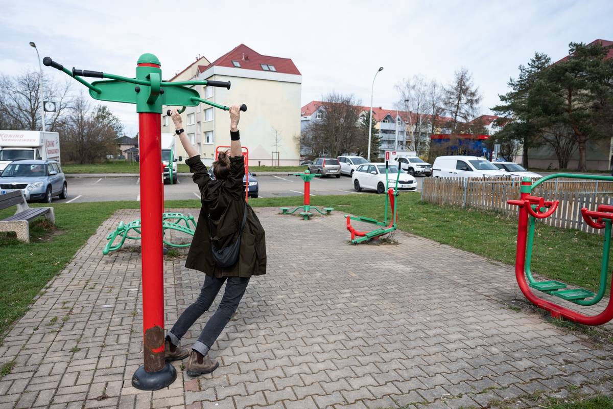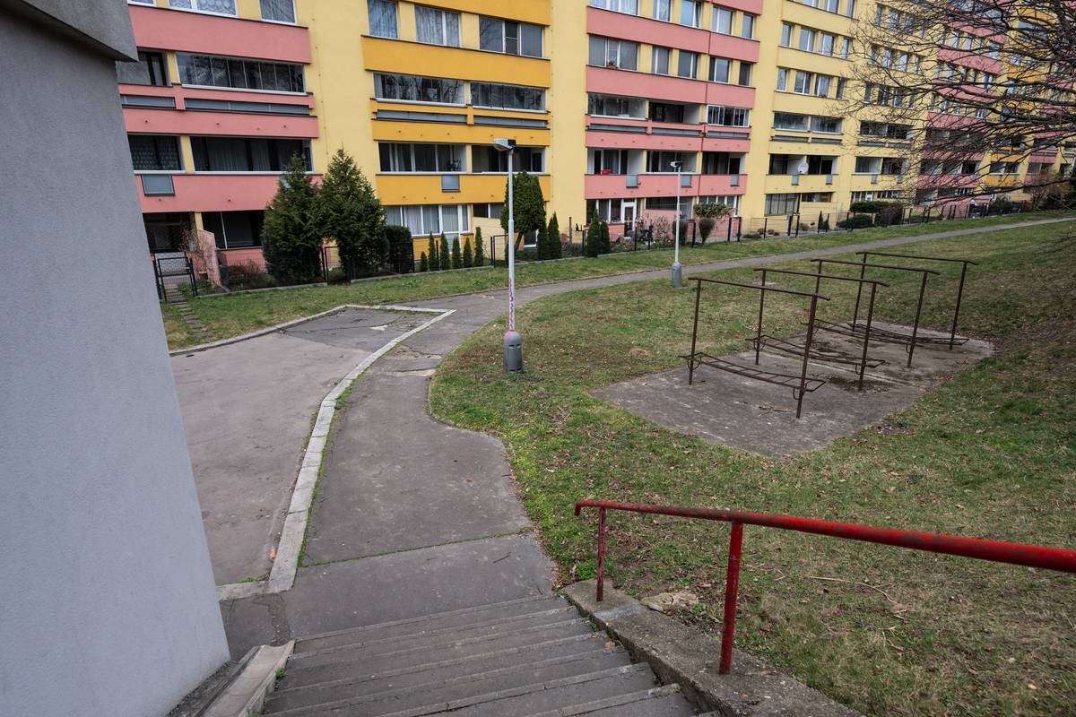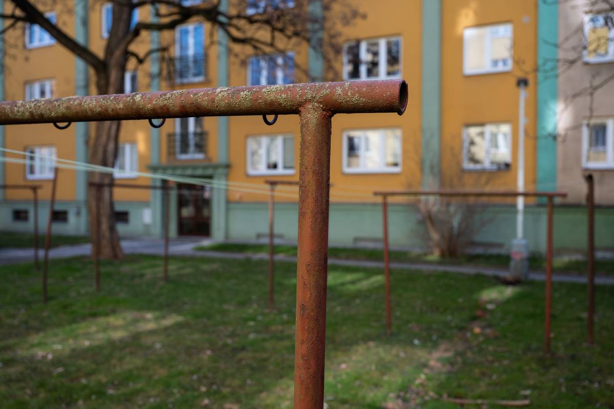 Protože domy nemají balkony, je prostor mezi budovami osázen „lesem“ sušáků a klepadel.