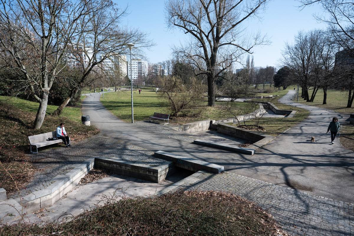 ... ale může se pochlubit skutečně unikátním parkem s nejdelší umělou vodní soustavou v Praze vůbec. Ta se přes zimu vypouští, ale s jarem se opět naplní a přivábí do Parku přátelství kvákající kačeny.