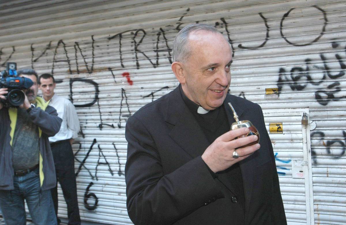 Kardinál Jorge Mario Bergoglio pije tradiční argentinský nápoj maté. Snímek byl pořízen 3. března 2013, deset dní před jeho zvolením papežem. Stal se prvním papežem z amerického kontinentu a prvním neevropským papežem po více než tisíciletí.