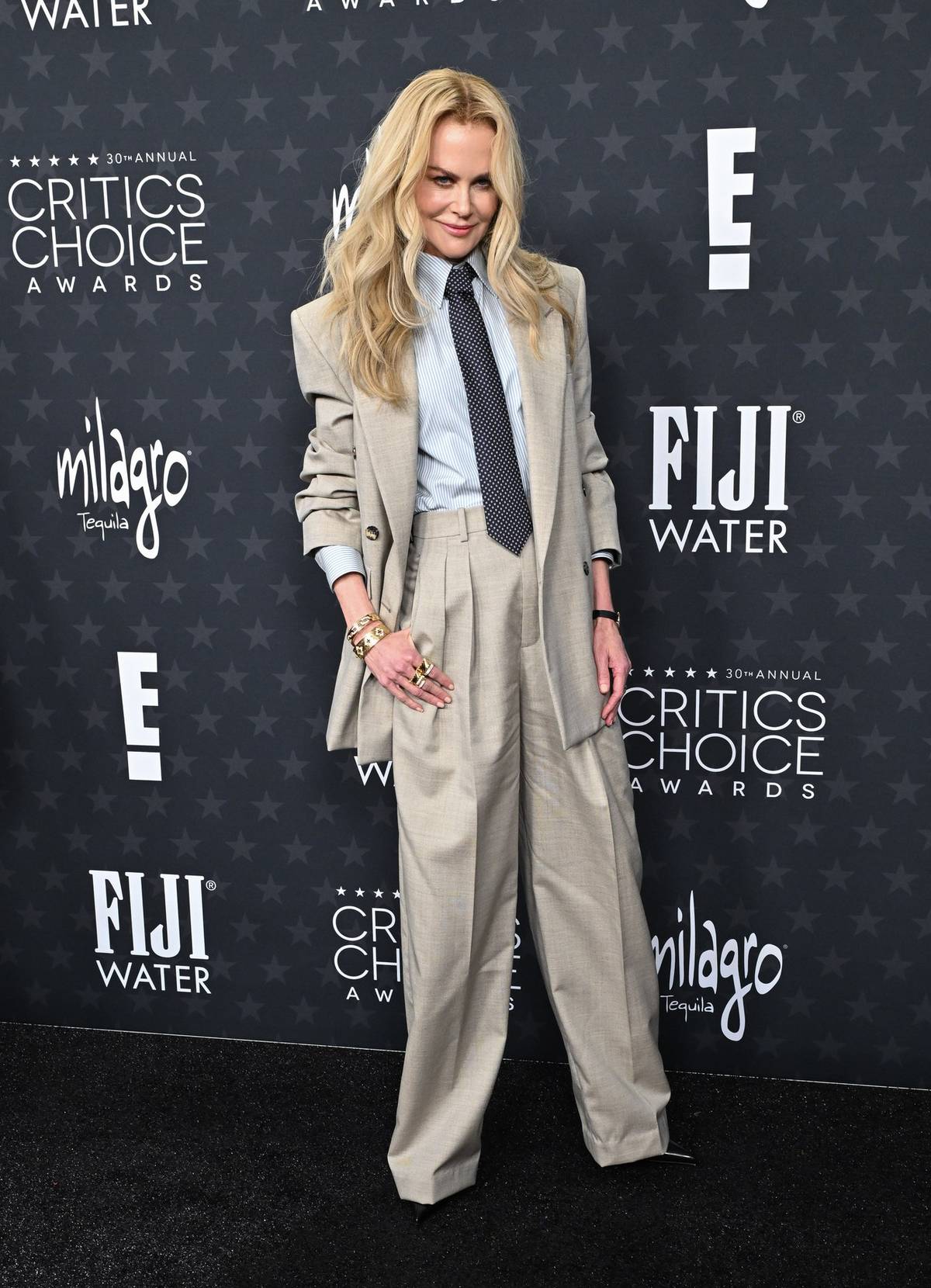 Nikol Kidmanová se objevila ve světlém obleku na udílení cen Critics Choice Awards v Santa Monice.