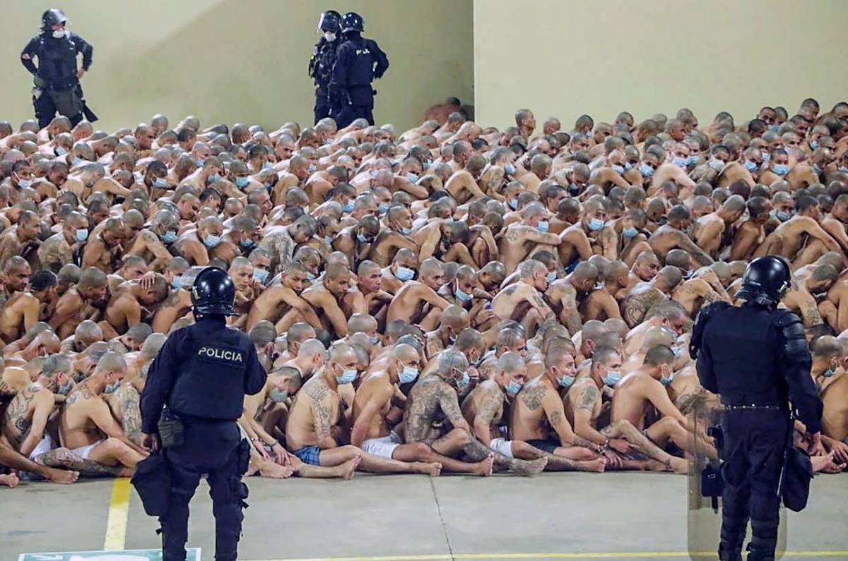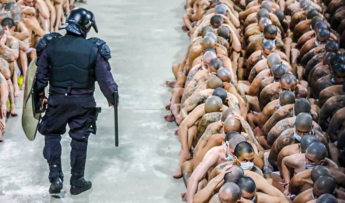 Na sociálních sítích se mezitím objevily fotografie zveřejněné kanceláří prezidenta Nayiba Bukeleho, které ukazují stovky vězňů svlečených jen do šortek mezitím, co byly kontrolovány jejich cely.