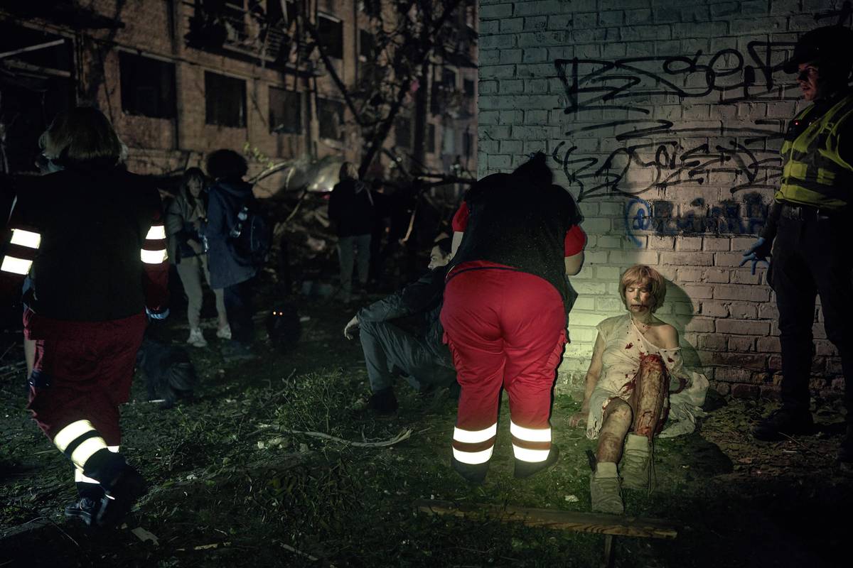 Ošetřovaní raněných. Celkem bylo zraněno 70 obyvatel. Někteří potřebovali pomoc kvůli akutní stresové reakci.
