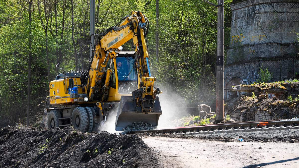 Přes Velikonoce se pracovalo na jedné z kolejí mezi Karlštejnem a Srbskem. Sanační stroj kompletně vyměnil železniční spodek (štěrkový základ) a svršek.