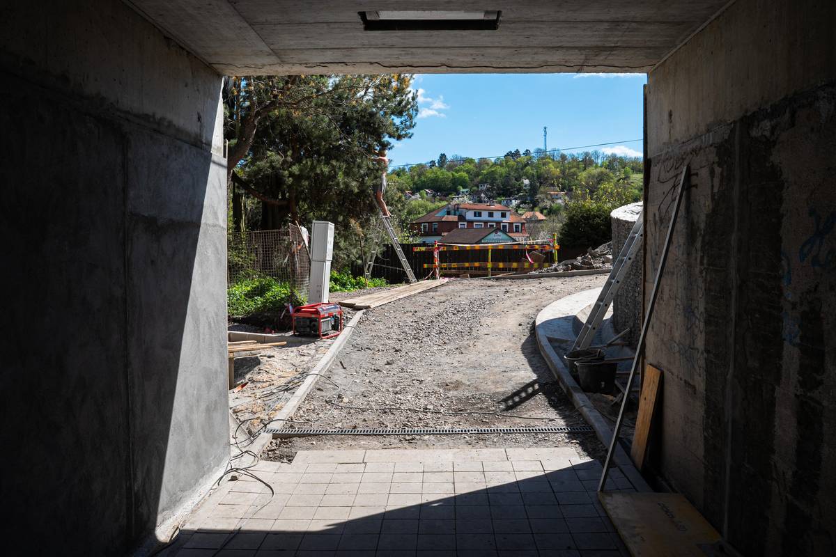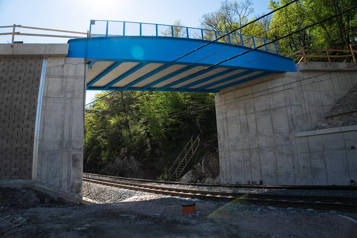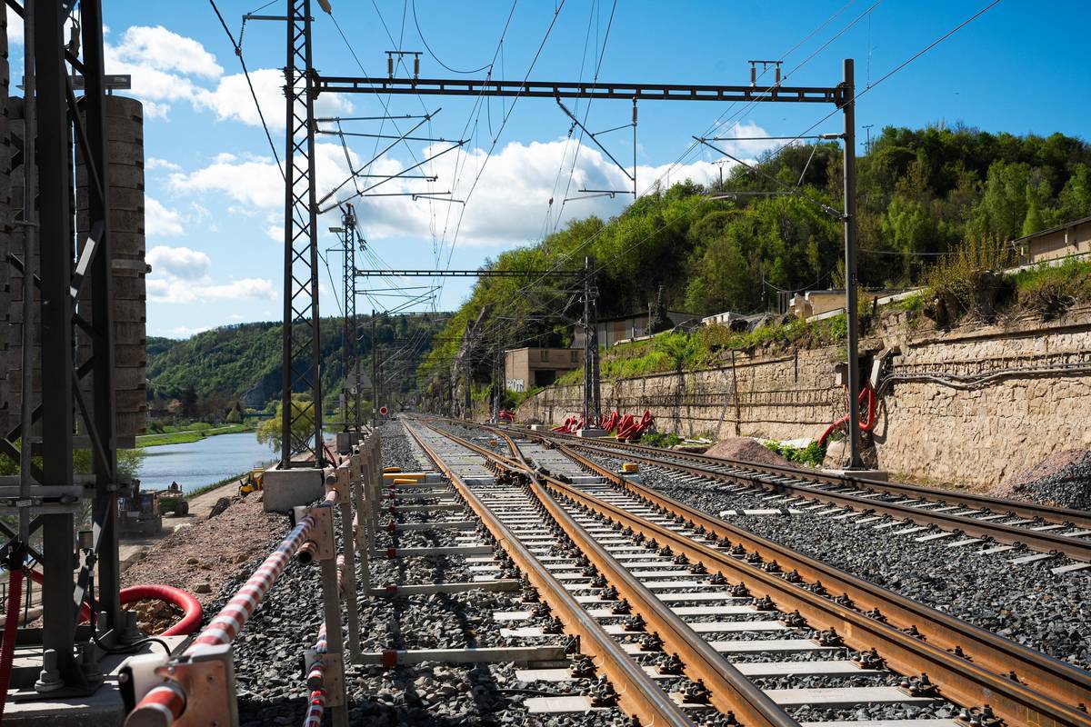 Nadjezd u vyhlídky Tětín se musel zvýšit kvůli novému trakčnímu vedení. Zbývá ještě dokončení nájezdové rampy a osazení zábradlí.