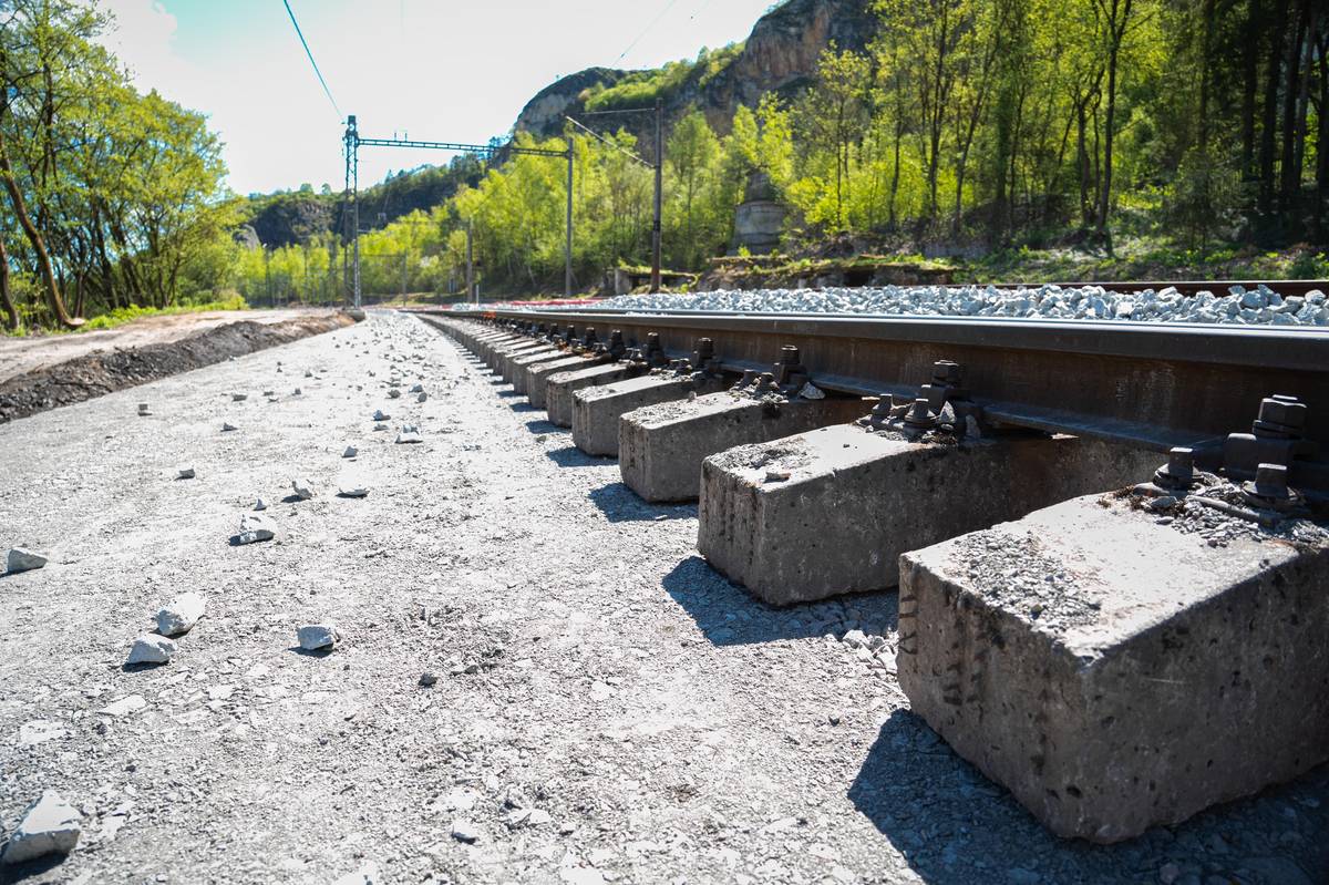 První byla realizovaná kolej mezi odbočkou Lom a Berounem. Na snímku je možné vidět vyměněné pražce a nové koleje.