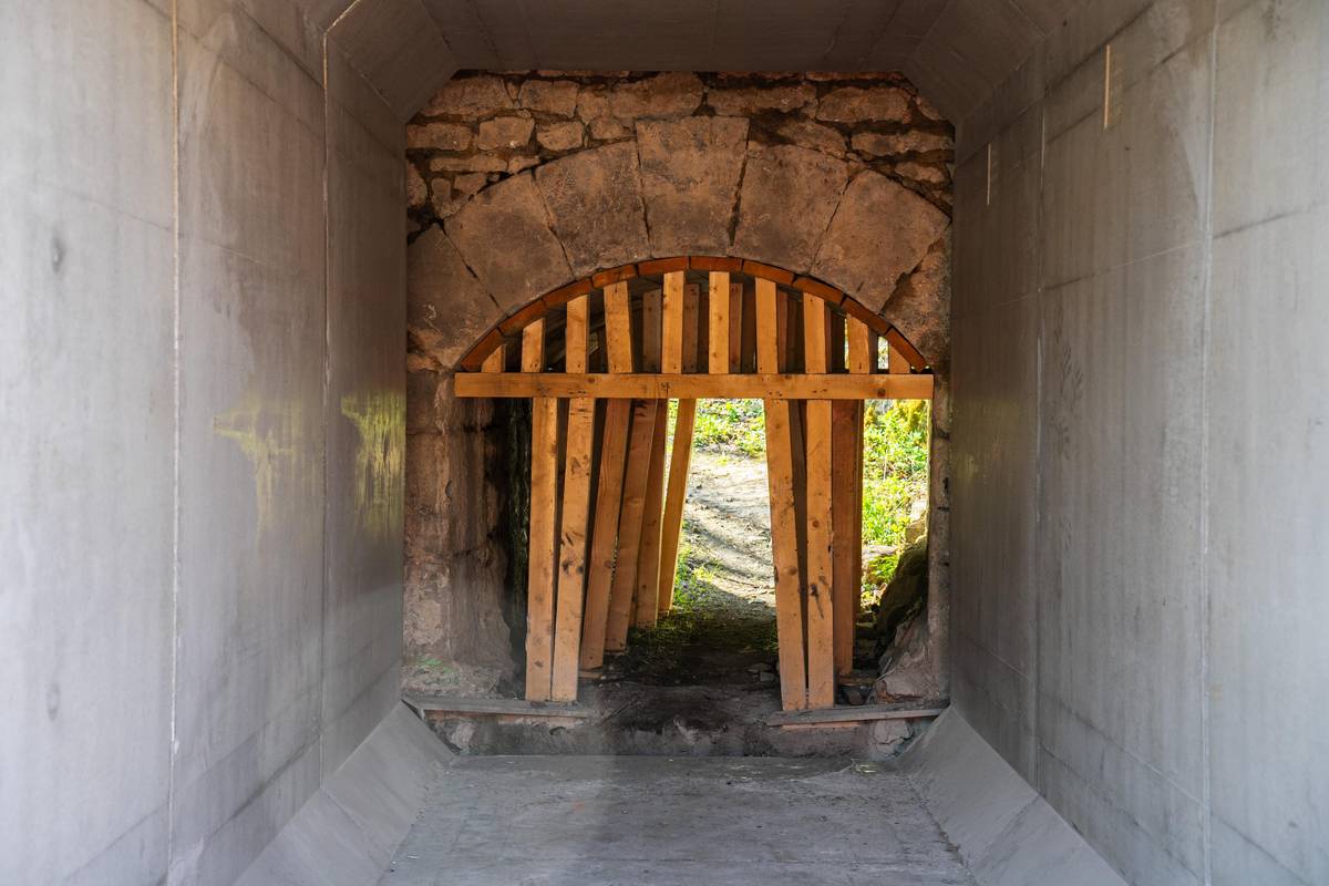 Propustky se osadí podpěrnými sloupy a následně se na ně aplikuje stříkaný beton.