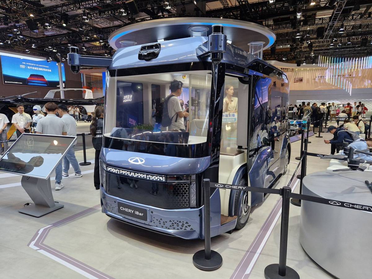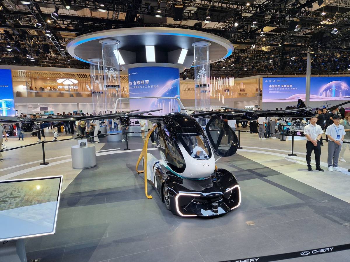 Létající auta byla k vidění na více stáncích, mezi nimi i u Chery.