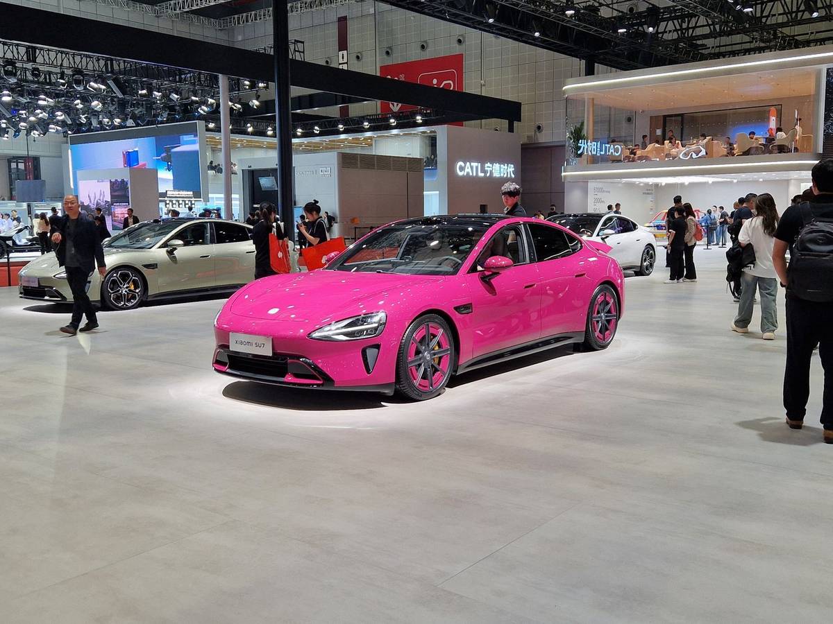 Xiaomi ukázalo jen sedan SU7, za to ale prakticky ve všech možných barvách. Nejvíce elektromobil zaujal v této růžové.