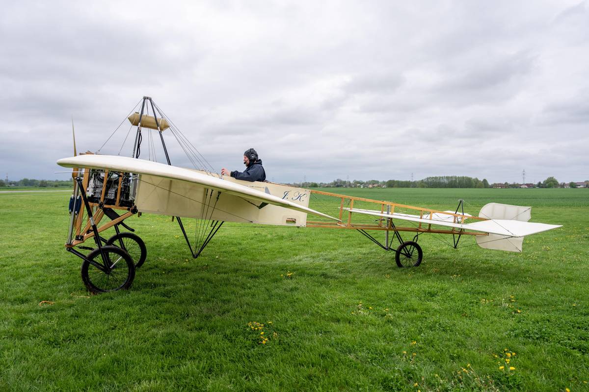 Letoun Blériot při předletové kontrole na letišti v Kuněticích