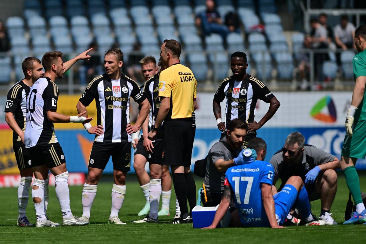 Zápas 1. kola nadstavby první fotbalové ligy - skupina o záchranu: Dynamo České Budějovice - FK Mladá Boleslav, zraněný Daniel Mareček