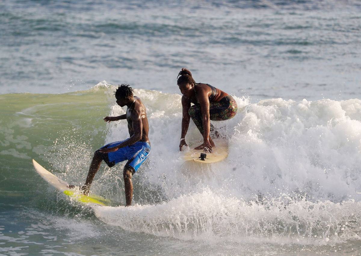 Sambeová surfuje s kamarádkou Madicke Mbengueovou.