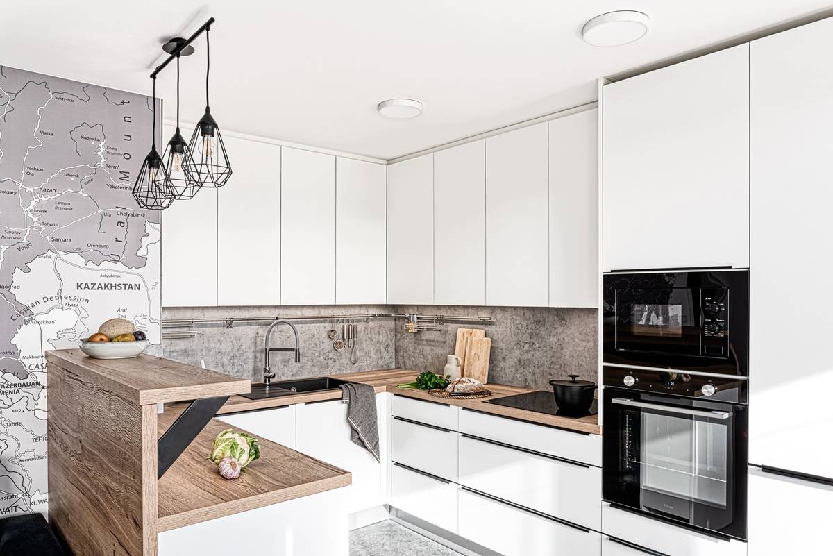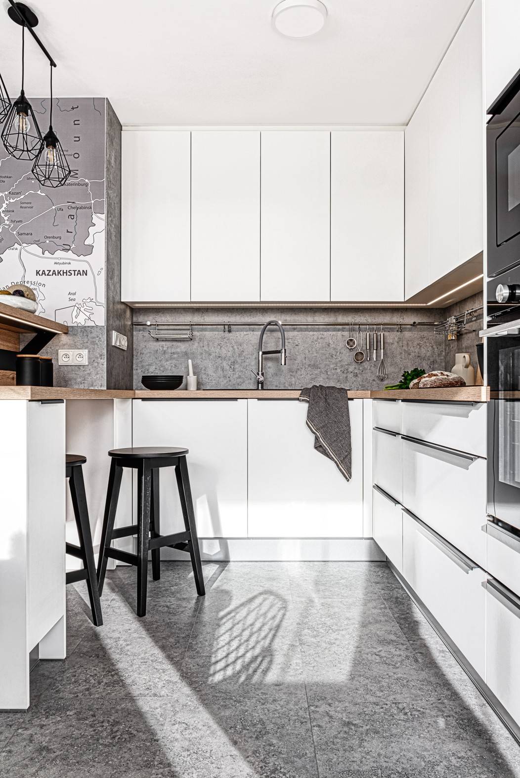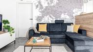 Klíčovým prvkem obývací části je obří mapa Evropy