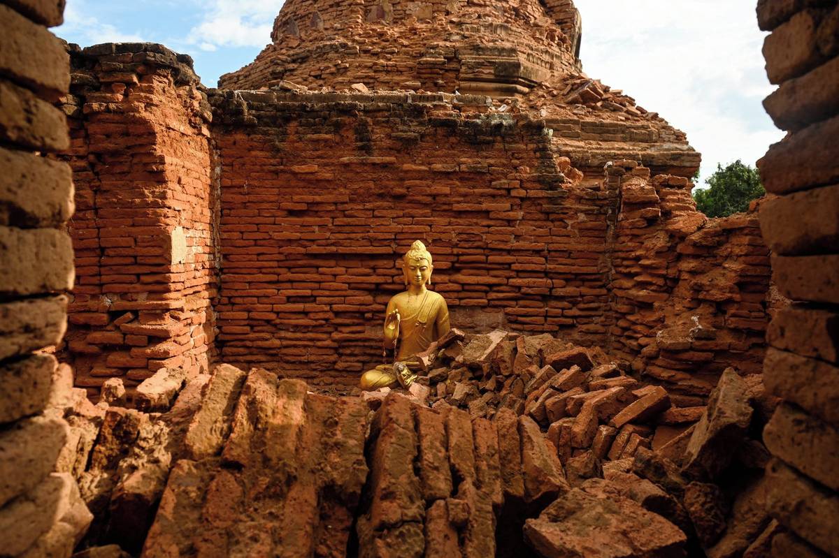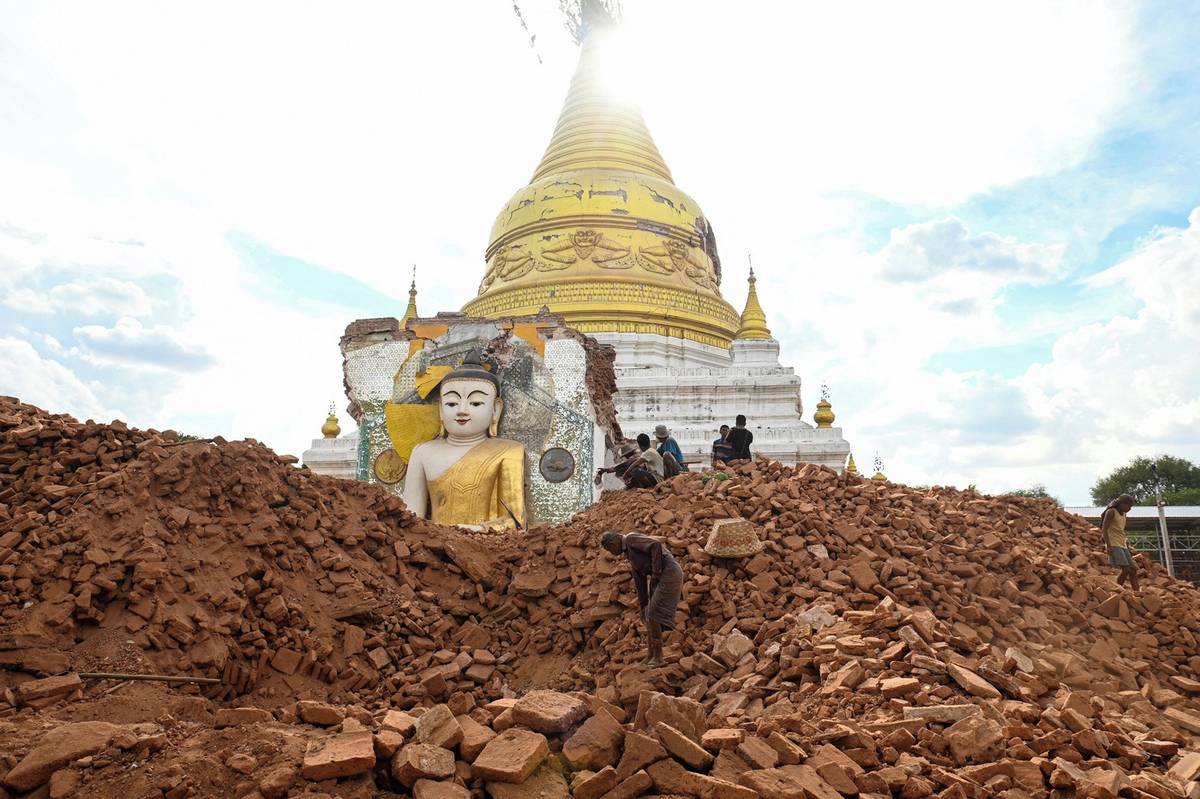 Otřesy o síle 7,7 stupně srovnaly 28. března se zemí například pagodu Nagayon na předměstí centrálního myanmarského města Mandalaj, kde zemřelo přes 3700 lidí a nejméně 5000 dalších bylo zraněno. (Vyfoceno 12. dubna)