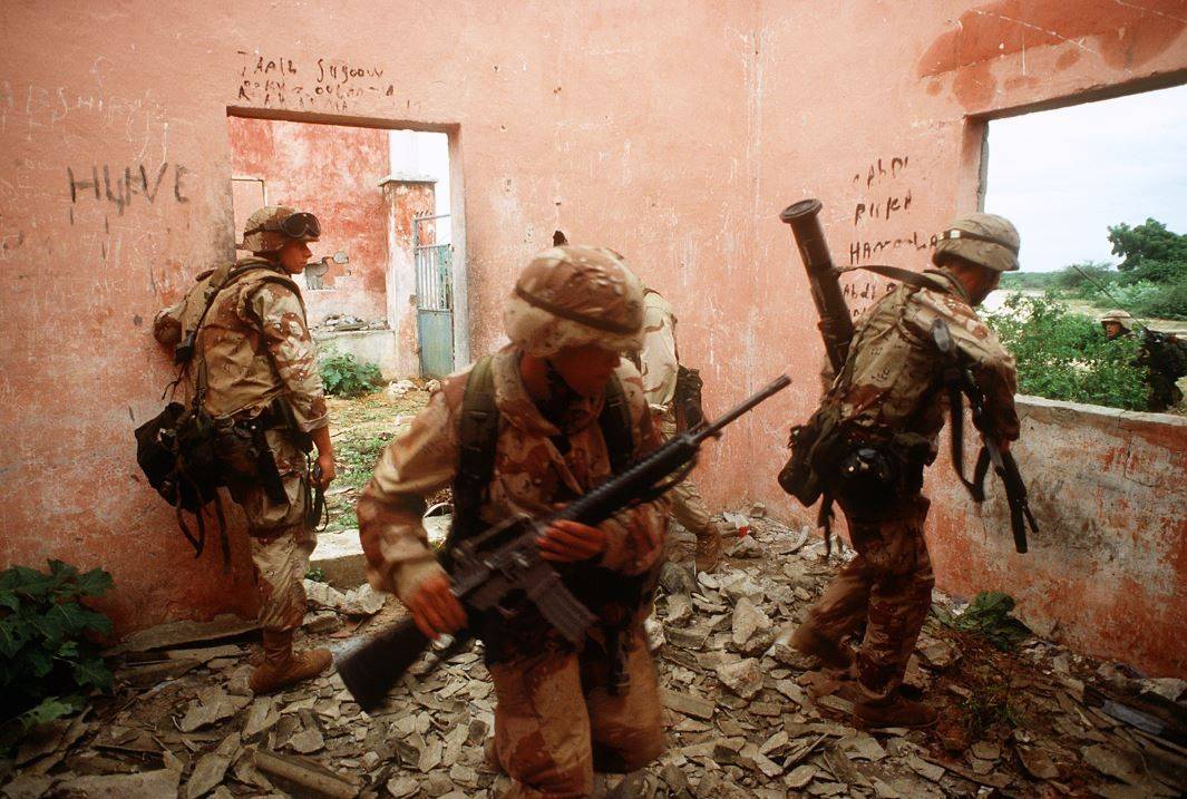 Západní jednotky musely v roce 1993 čelit řadě gerilových akcí somálských milic a ztráty narůstaly. Začínalo být jasné, že Aidida, který stále unikal, je nutné zásadně oslabit. Snímek z června 1993.