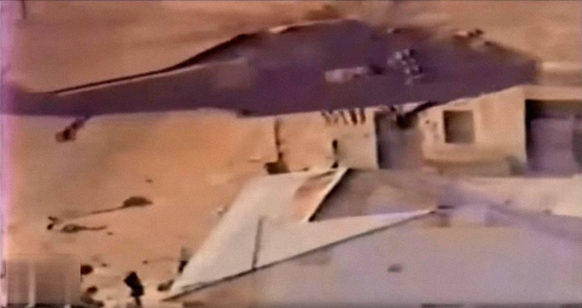Další z mála autentických snímků z průběhu operace ze 3. na 4. října 1993. Somálským milicím se podařilo sestřelit dvě americké helikoptéry. Z posádky té, která je na snímku a jež byla sestřelena jako druhá, přežil pouze pilot Michael Durant.