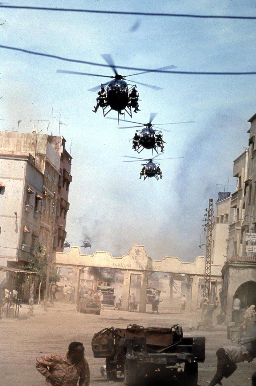 Vrtulníky fungovaly jako podpora pro pozemní konvoj, jejich úkolem bylo vysadit posily. Snímek je z filmu Černý jestřáb sestřelen.