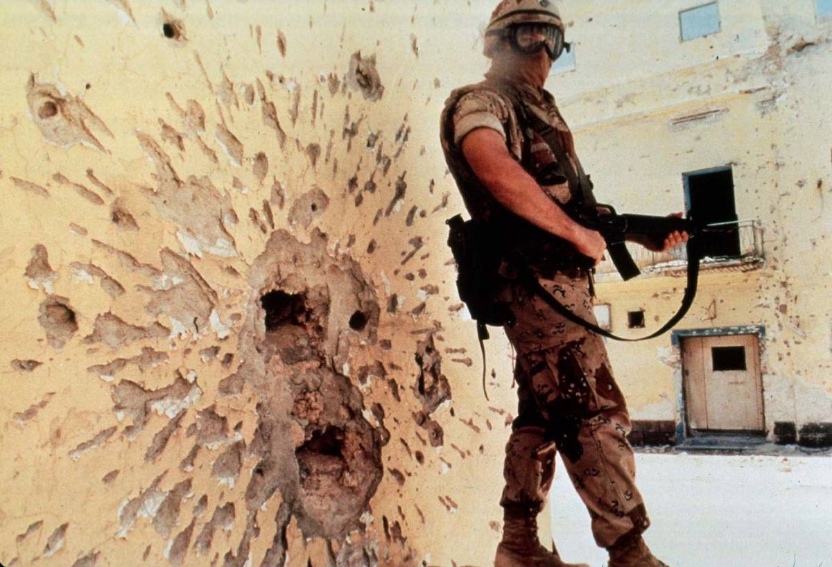 Somálsko se po pádu diktátorského režimu Mohameda Siada Barreho v roce 1991 utápělo v chaosu občanské války. O moc se přely jednotlivé klany, lidé trpěli hladem. Na snímku ze 6. ledna 1993 americký voják účastnící se operace "Restore Hope".