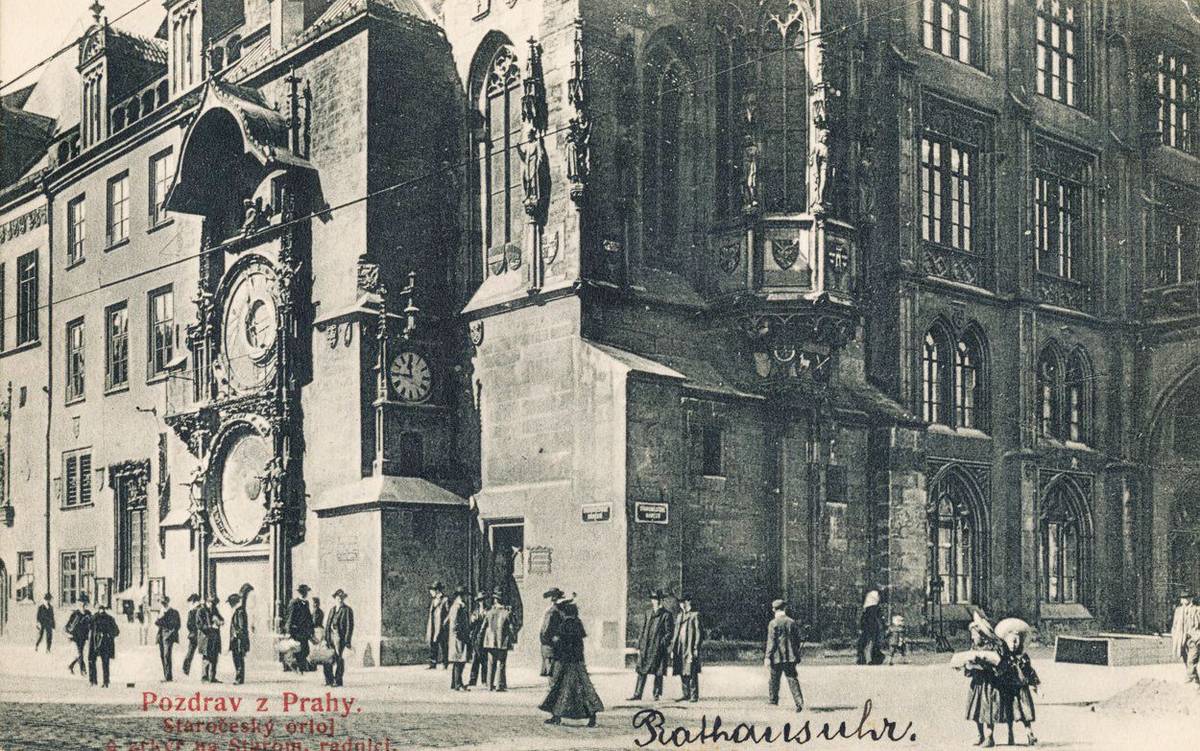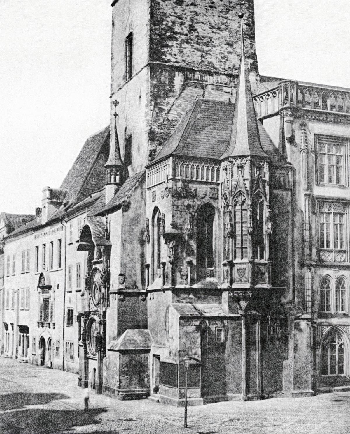 Fotografie nároží Staroměstské radnice (nedatováno)