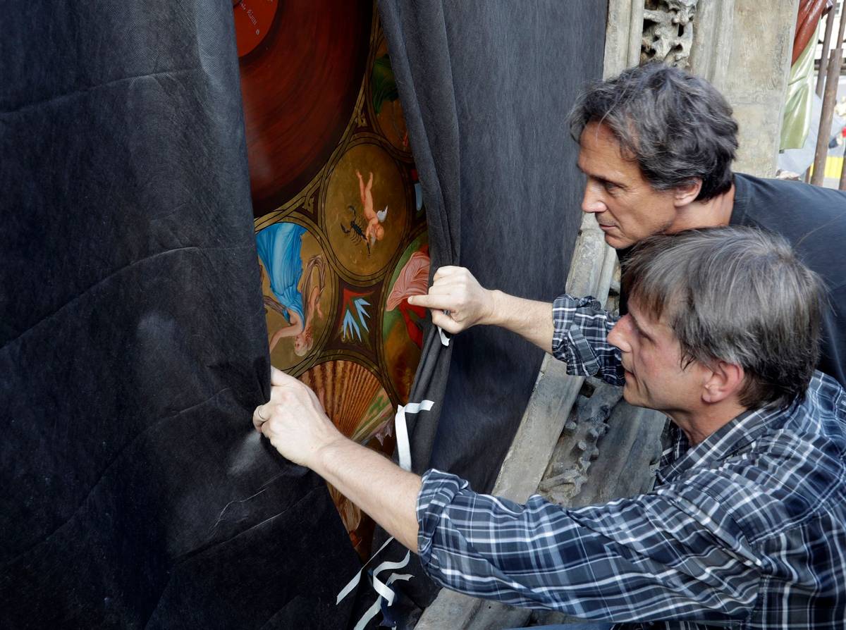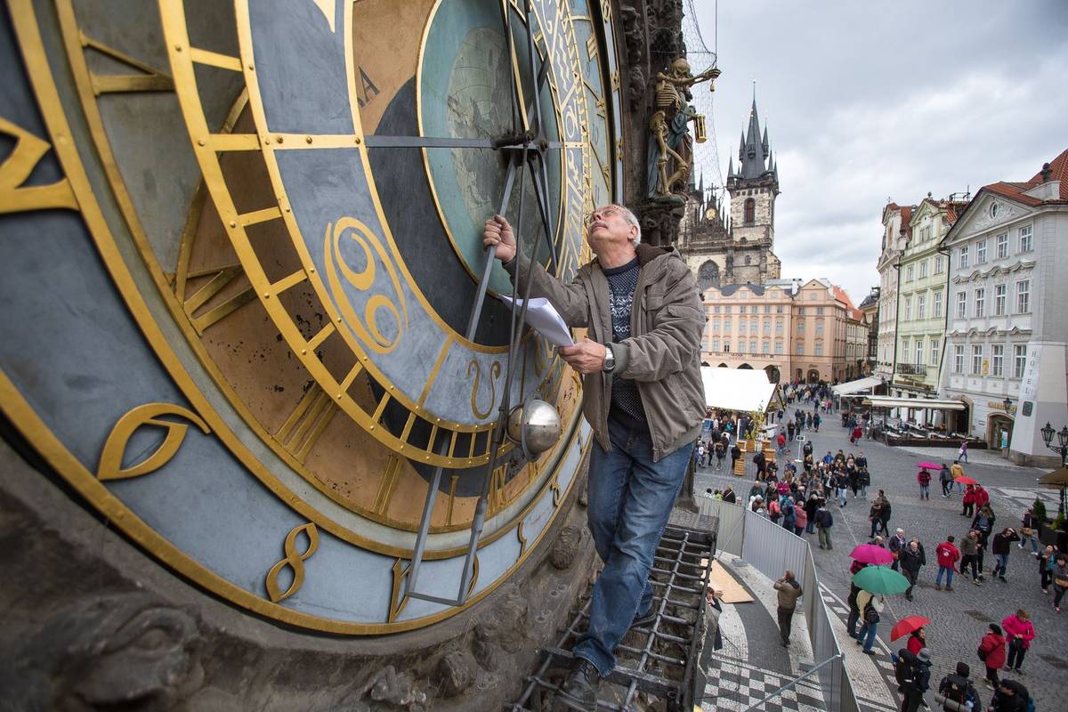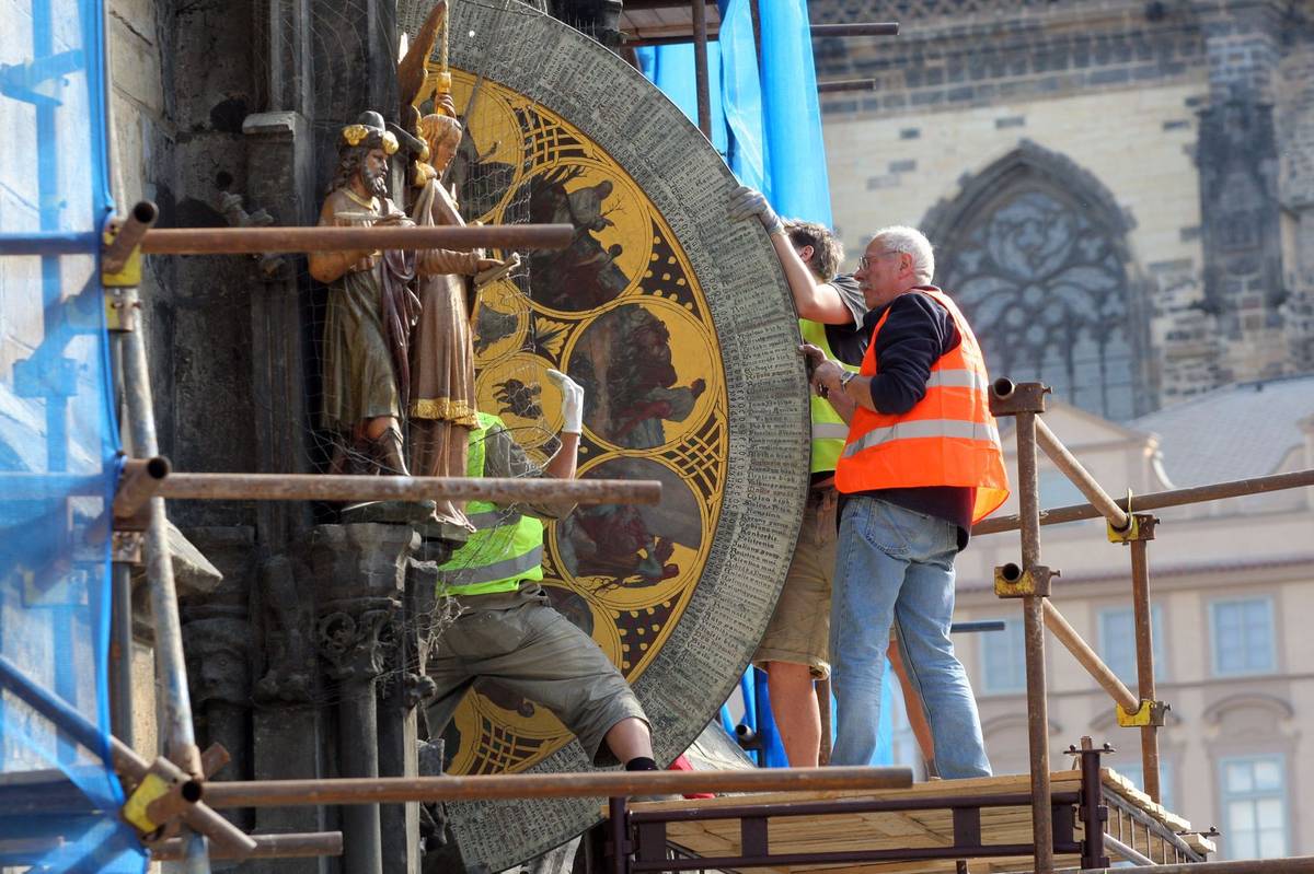 Demontáž kalendáře z pražského orloje (2017).