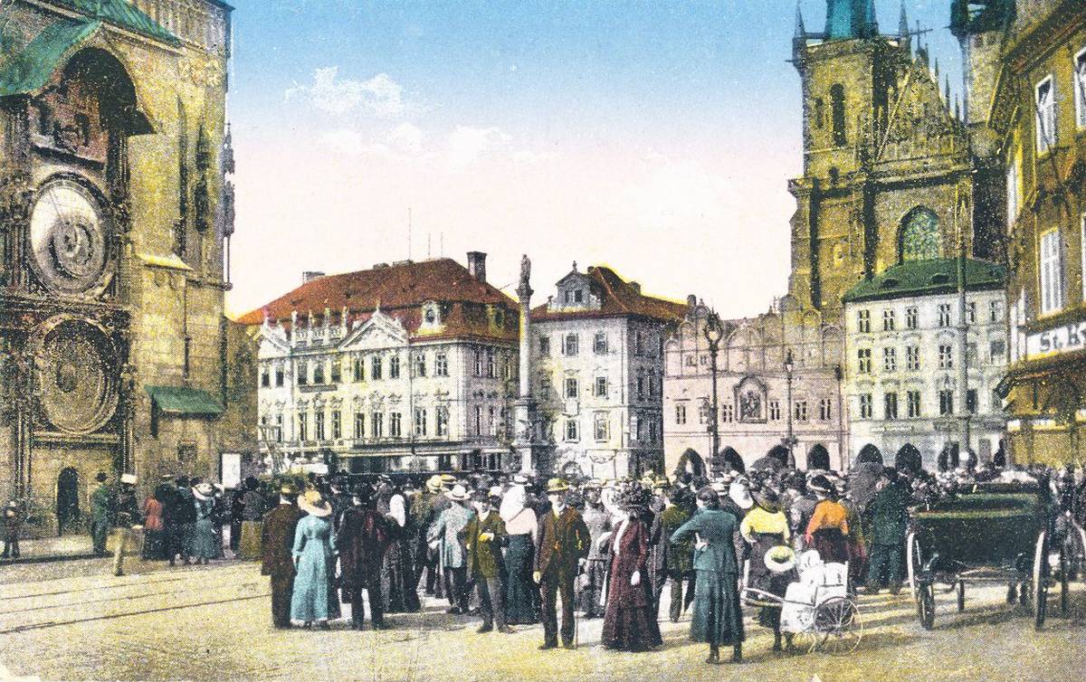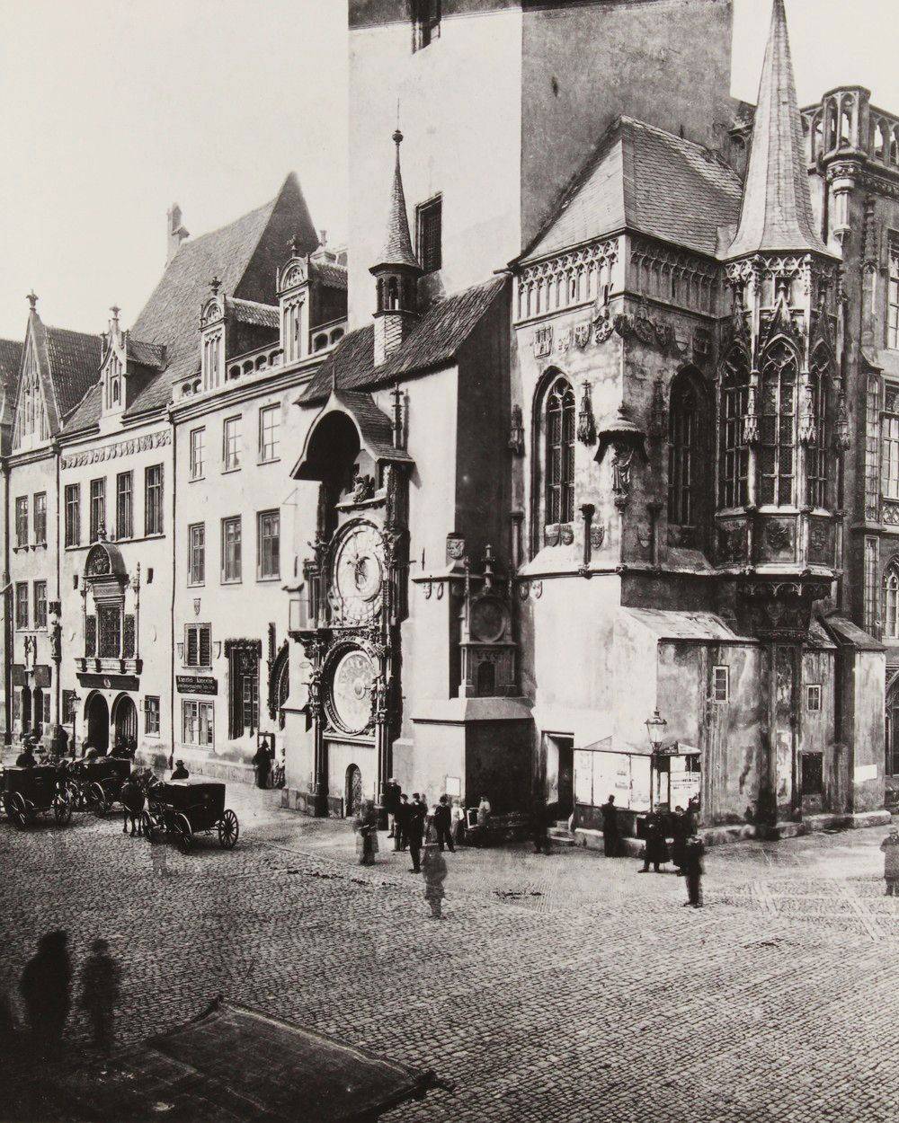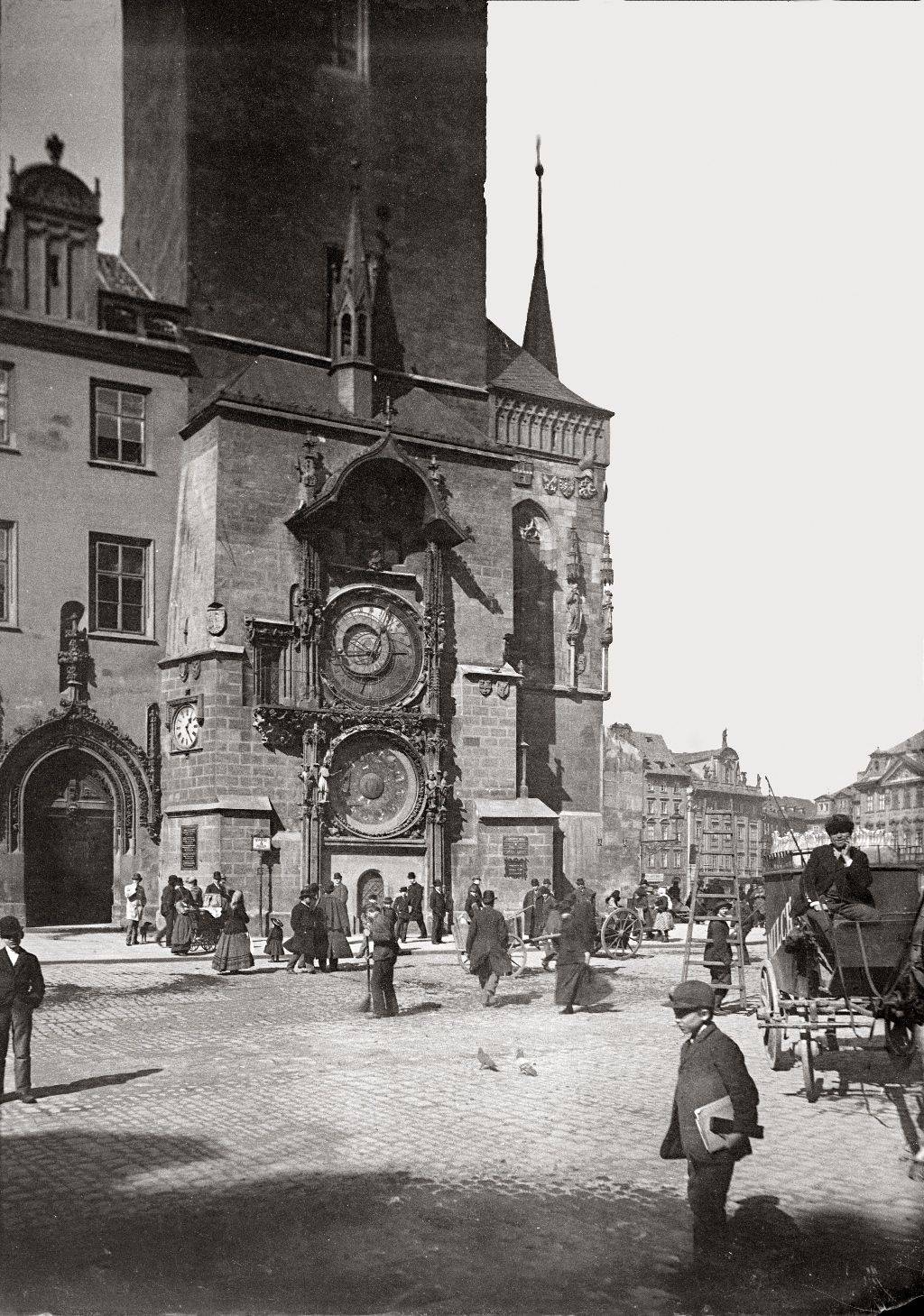 U Staroměstského orloje (polovina stereofotografie kolem 1890)