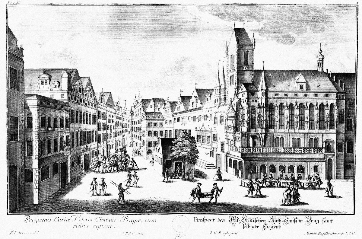 Staroměstská radnice, rytina (kresba 1729-41)