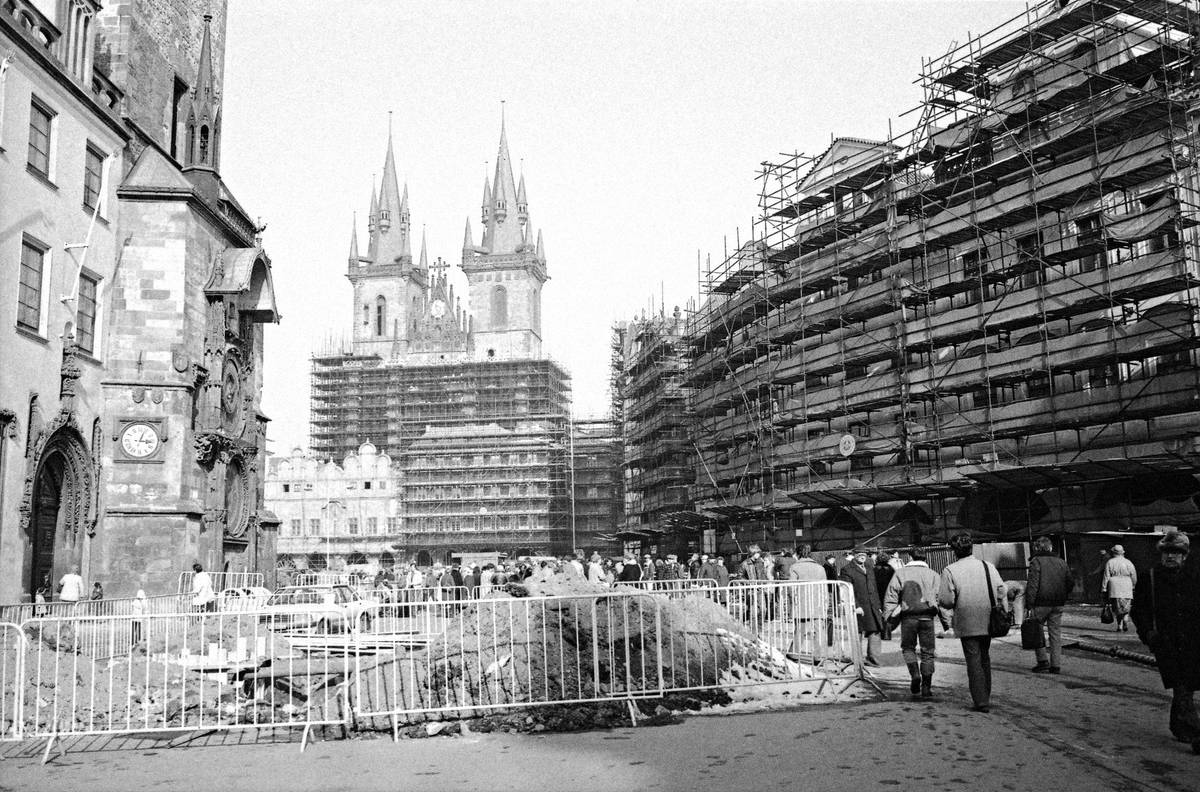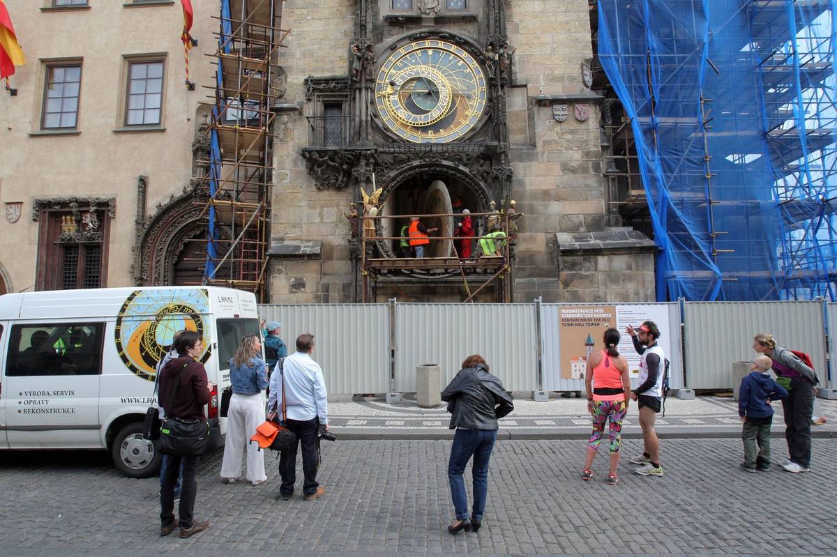 Staroměstská radnice a orloj před opravami