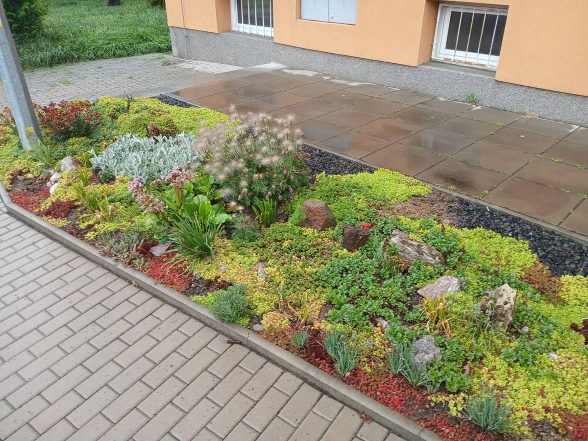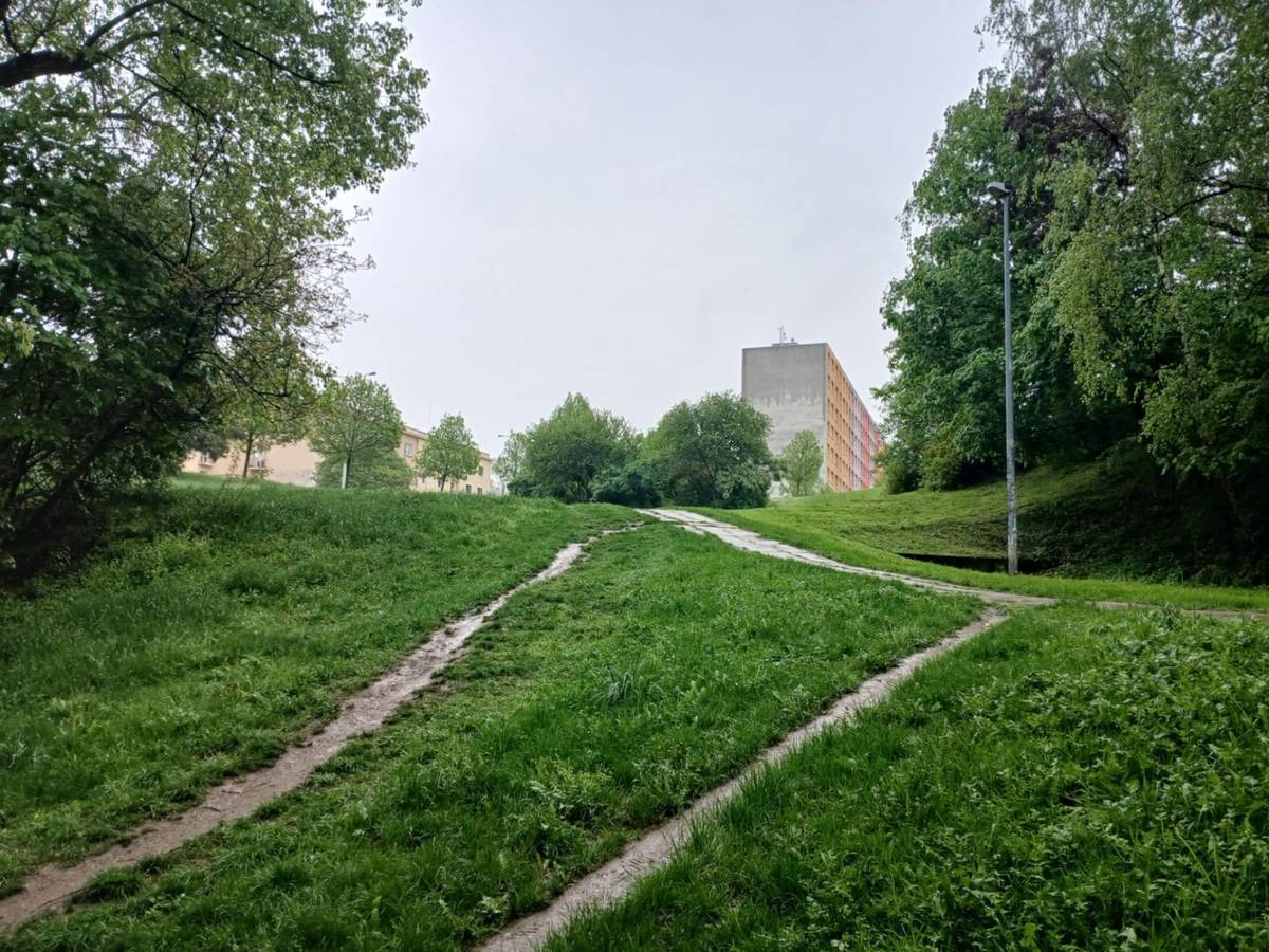 Na konci ulice se nachází malý parčík se zelení. O kus dál se pak rozkládá panelové sídliště.
