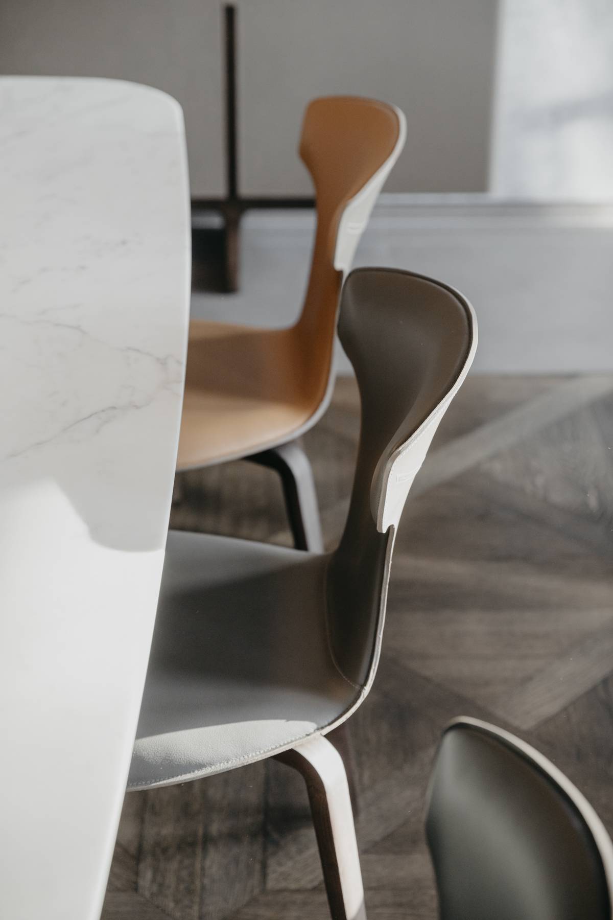 V bytě, který navrhoval architekt Pantelis Larcou, hraje hlavní roli italská nábytkářská Poltrona Frau.