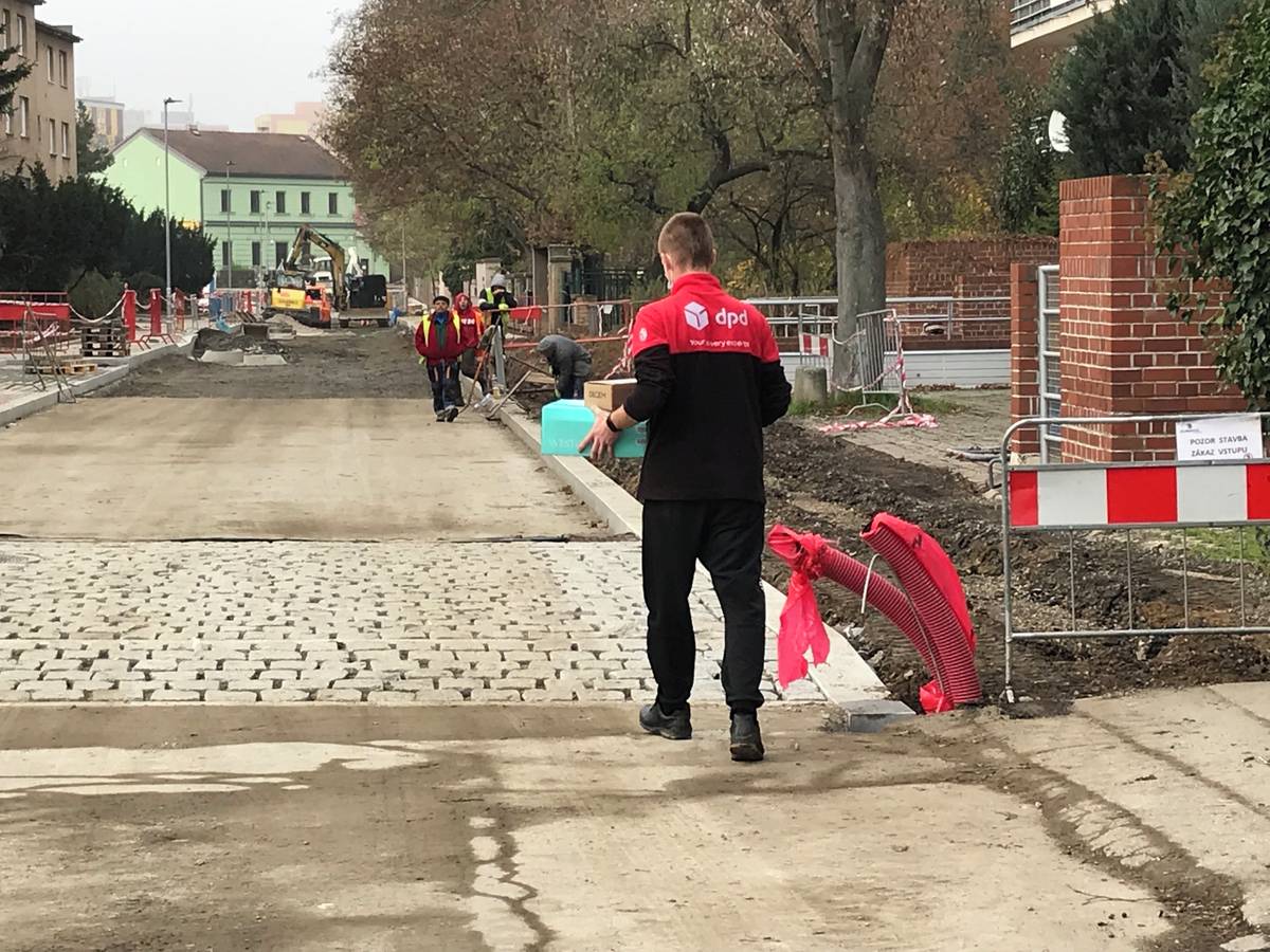 Je 13:00, odbavena je třetina adres a na doručení zbývá ještě 273 balíků. Začíná však „dobrá ulice“, což jsou areály či budovy s mnoha firmami na jednom místě. Na jednu recepci je tak možné doručit zásilky třeba deseti adresátům najednou.
