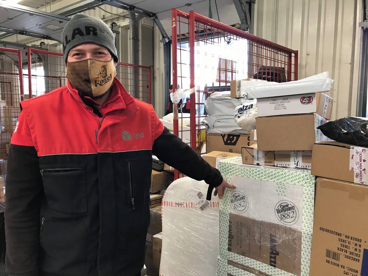 „Dnes to je masakr. Odvážím 400 balíků na 300 adres. Mám to místo posilovny, denně v rukách přenesu zhruba tři tuny,“ říká Martin Ondruš a ukazuje, jak vypadá totálně naplněná dodávka.