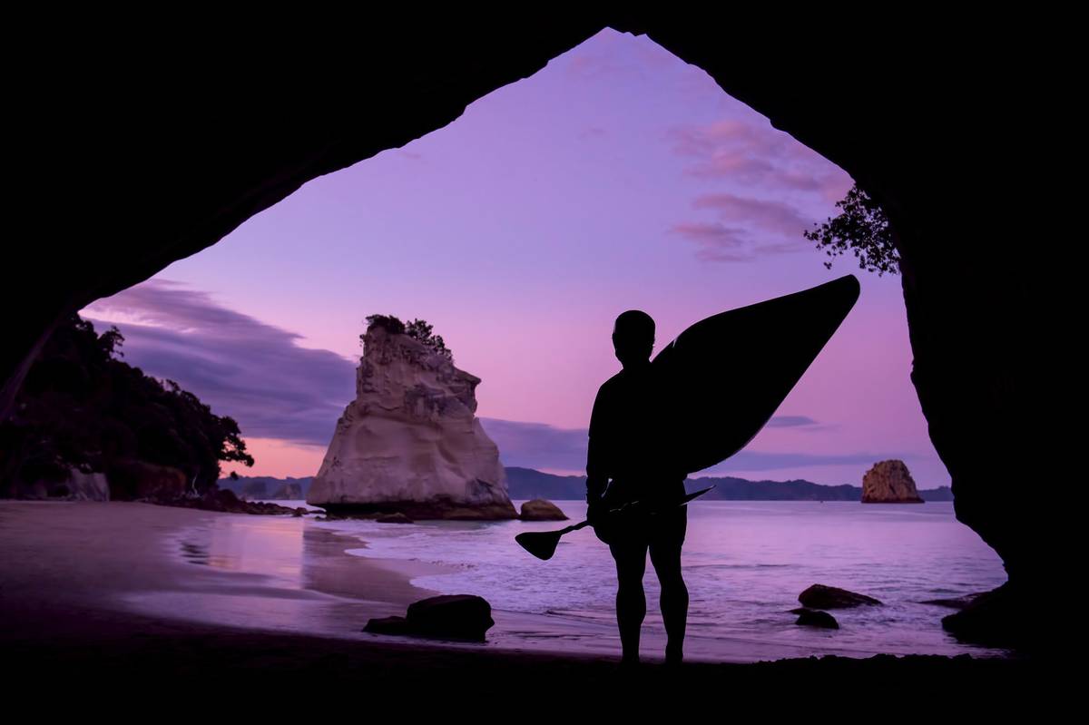 Jan Kasl: Kajakář Vavřinec Hradilek v novozélandské rezervaci Cathedral Cove.