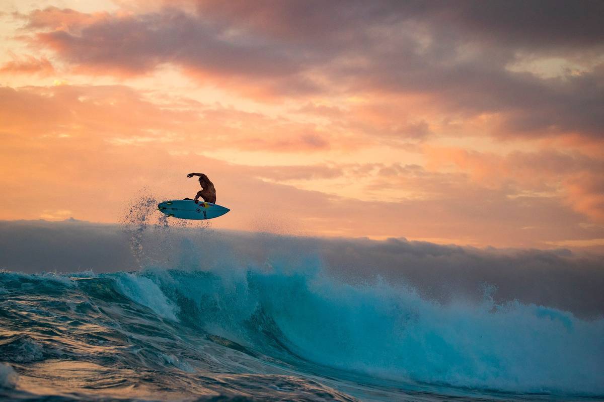 Hamish Humphreys: Surfař Bronson Meidi ve vlnách u indonéského ostrova Sumbawa.