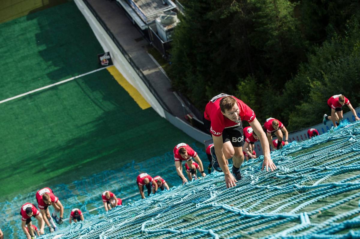 Victor Engström: Závodníci v extrémním běhu na 400 metrů v areálu skokanských můstků Salpausselkä ve finském Lahti.